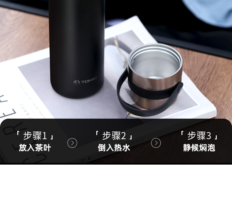 特美刻(TOMIC)双层不锈钢保温杯焖茶杯TW60106 550ML 白色