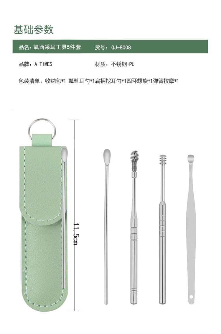 A-TIMES凯西采耳工具5件套GJ-8008(单位:套) 绿色