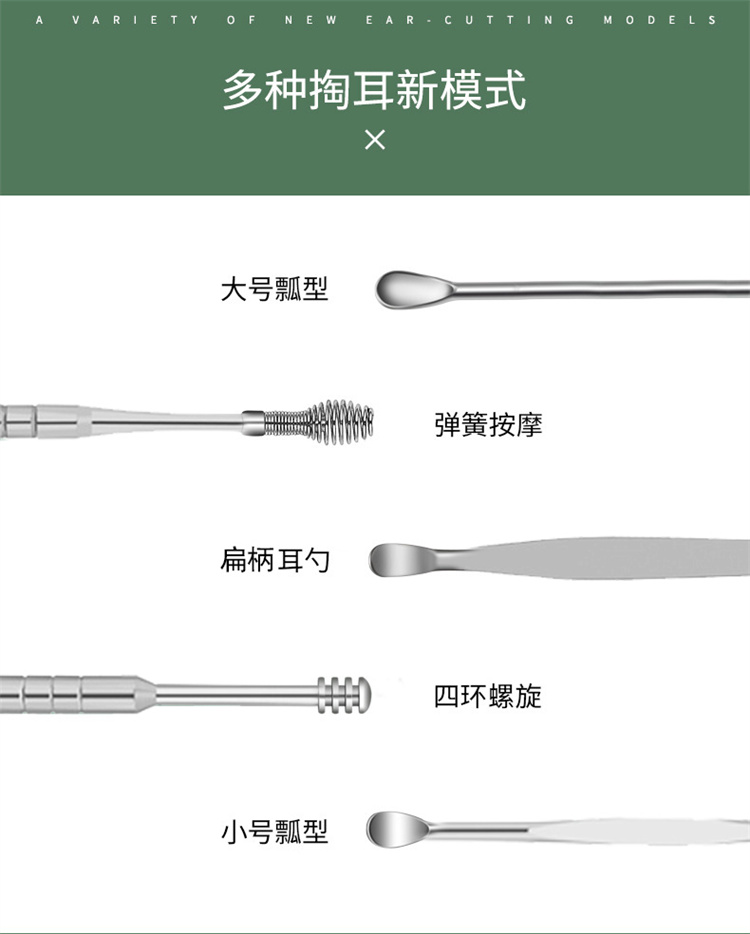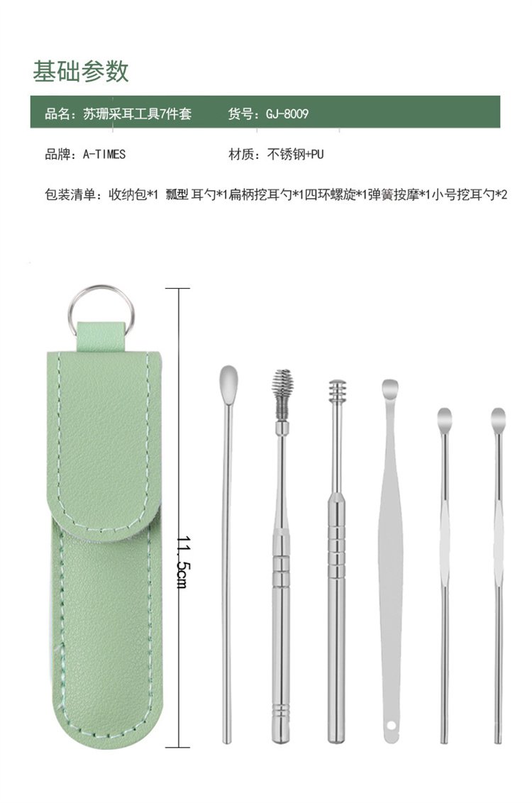 A-TIMES苏珊采耳工具7件套GJ-8009(单位:套) 绿色