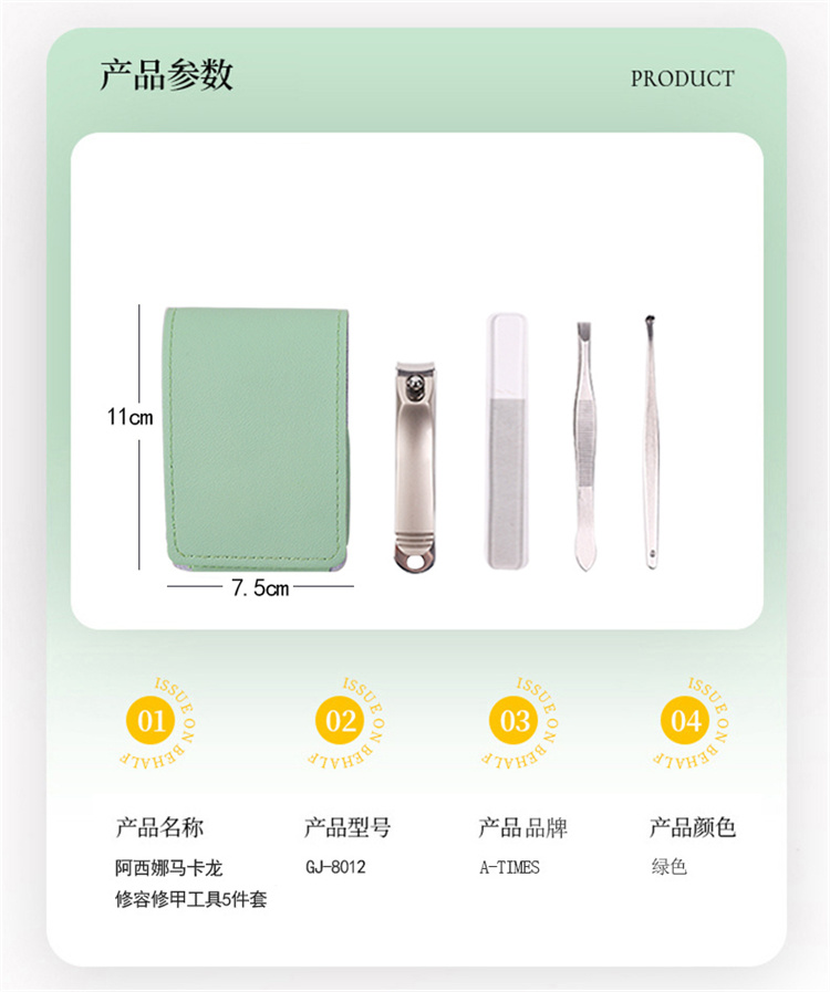 A-TIMES阿西娜马卡龙修容修甲工具5件套GJ-8012(单位:套) 绿色
