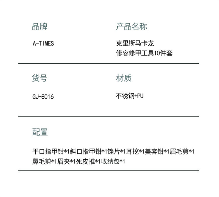 A-TIMES克里斯马卡龙修容修甲工具10件套GJ-8016(单位:套) 绿色