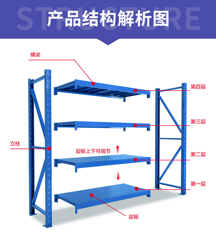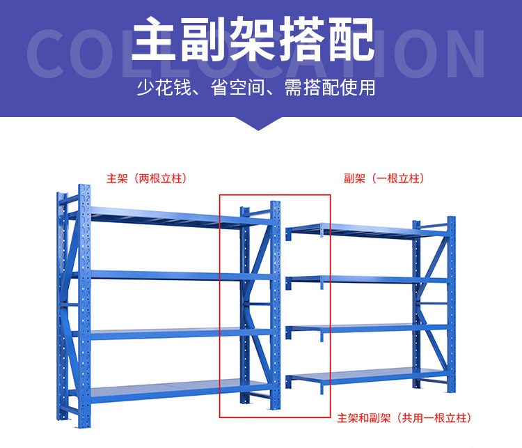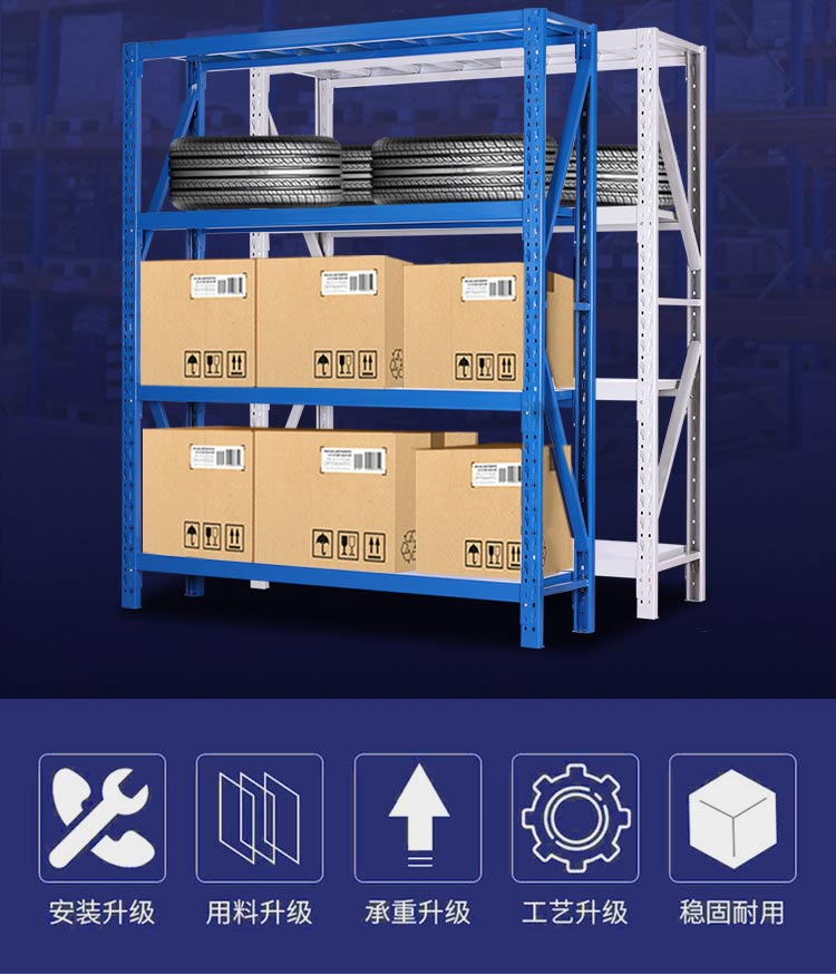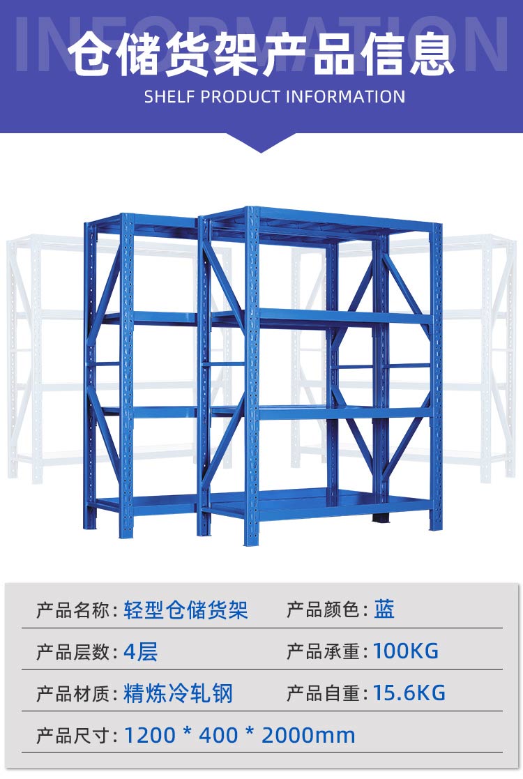 华豫汇阳 仓储货架仓库置物架轻型100kg/层 HY-HJ-01主架120*40*200cm 蓝色