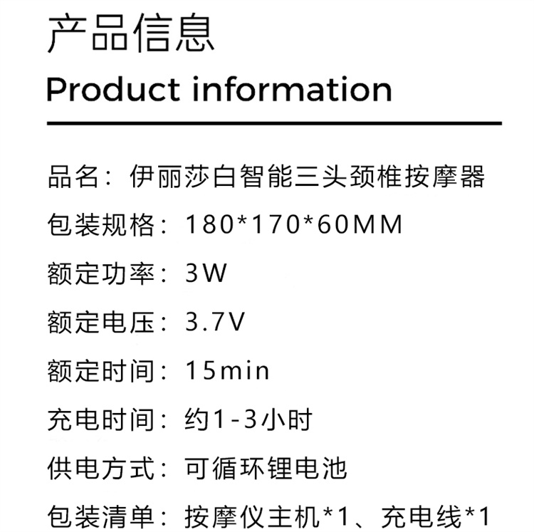 艾逸瑶选 颈椎按摩器GH-1002充电加热款(单位:个) 白色