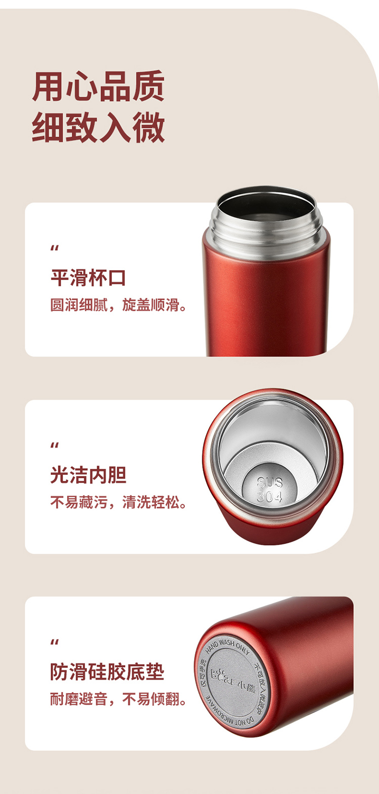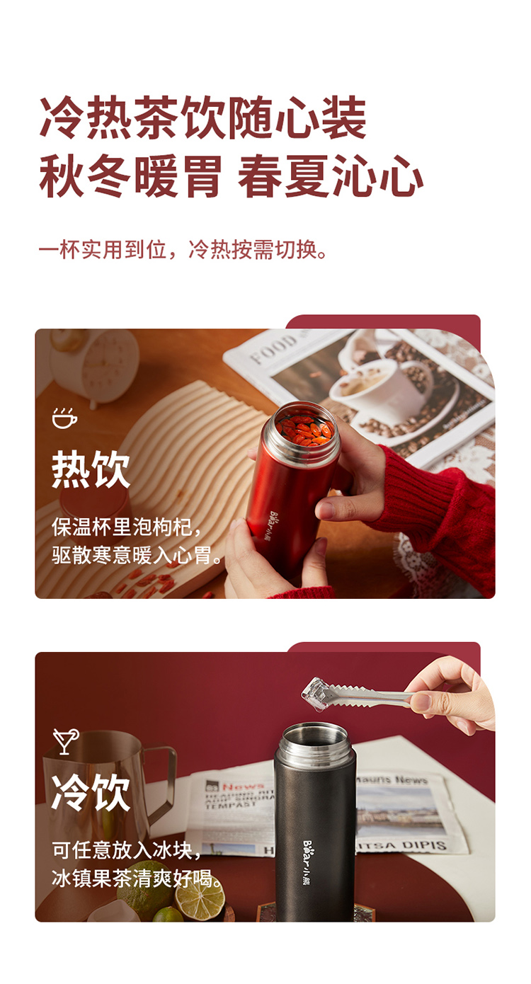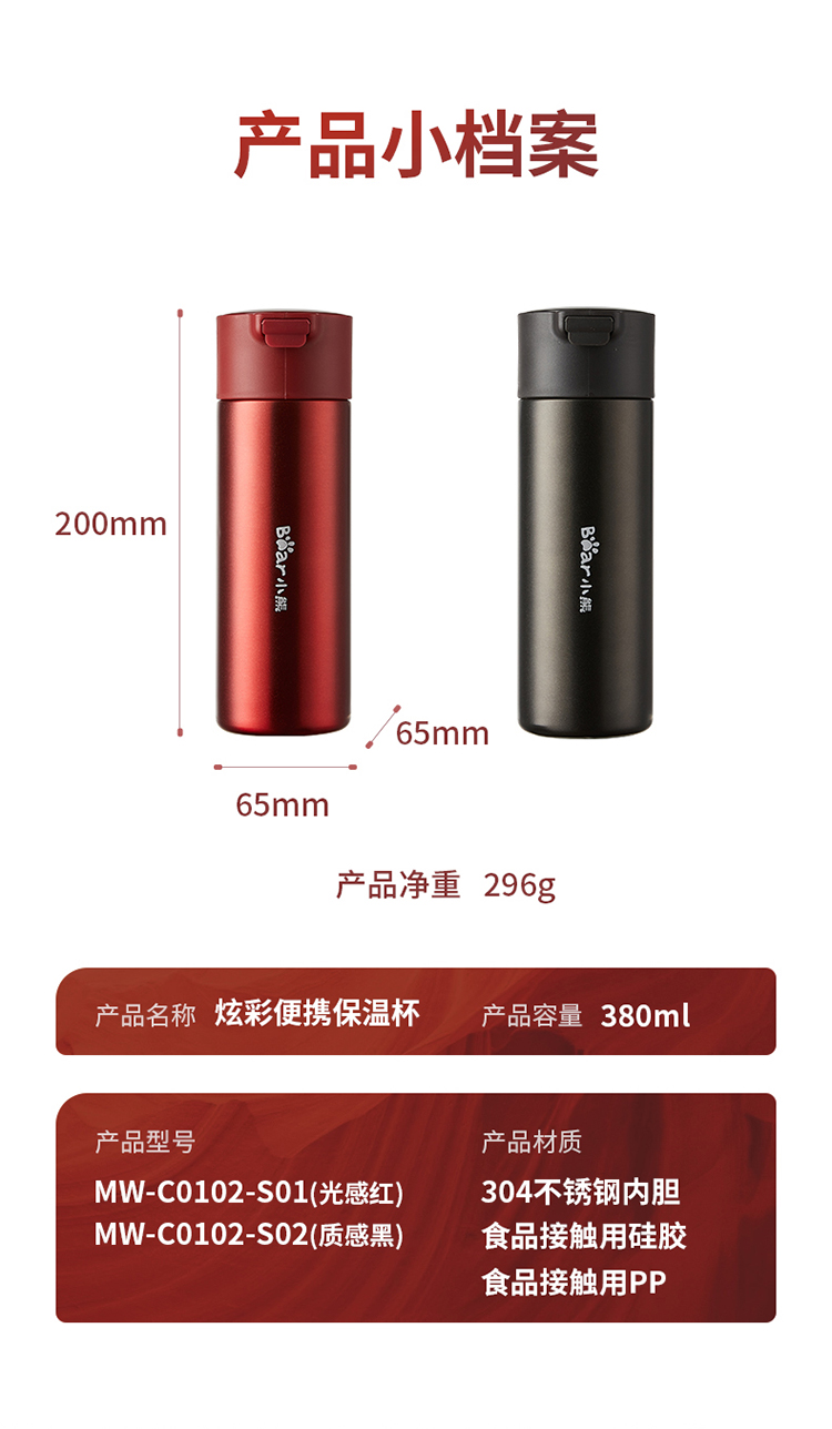 小熊(Bear)炫彩便携保温杯MW-C0102-S01 380ml(单位:个) 光感红