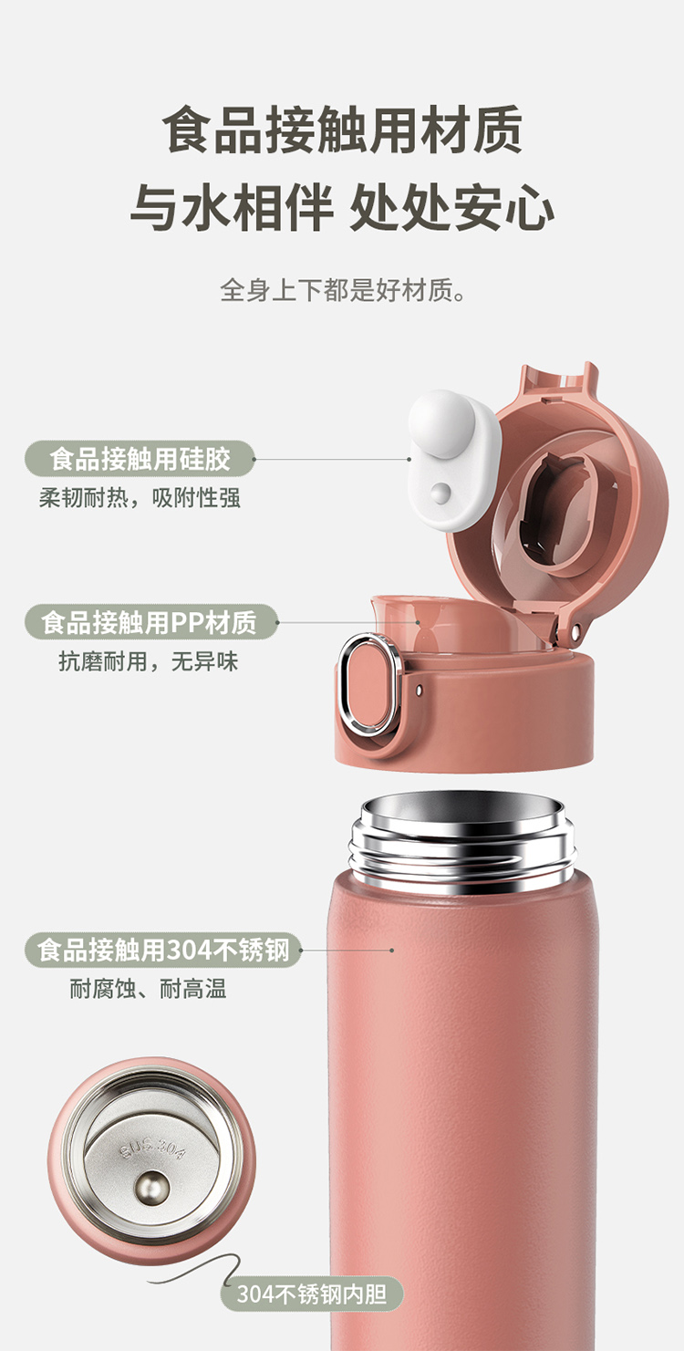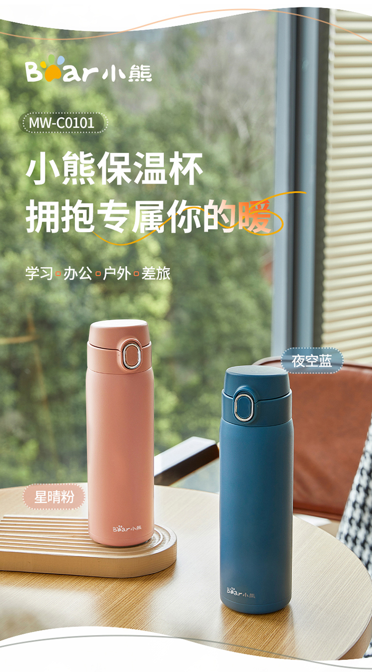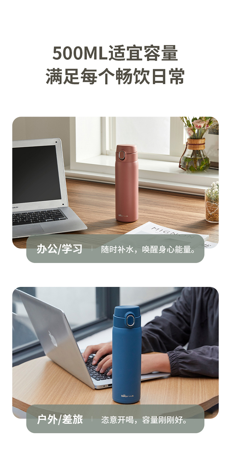 小熊(Bear) MW-C0101-S02 500ml 悦动弹跳保温杯(单位:个) 星晴粉