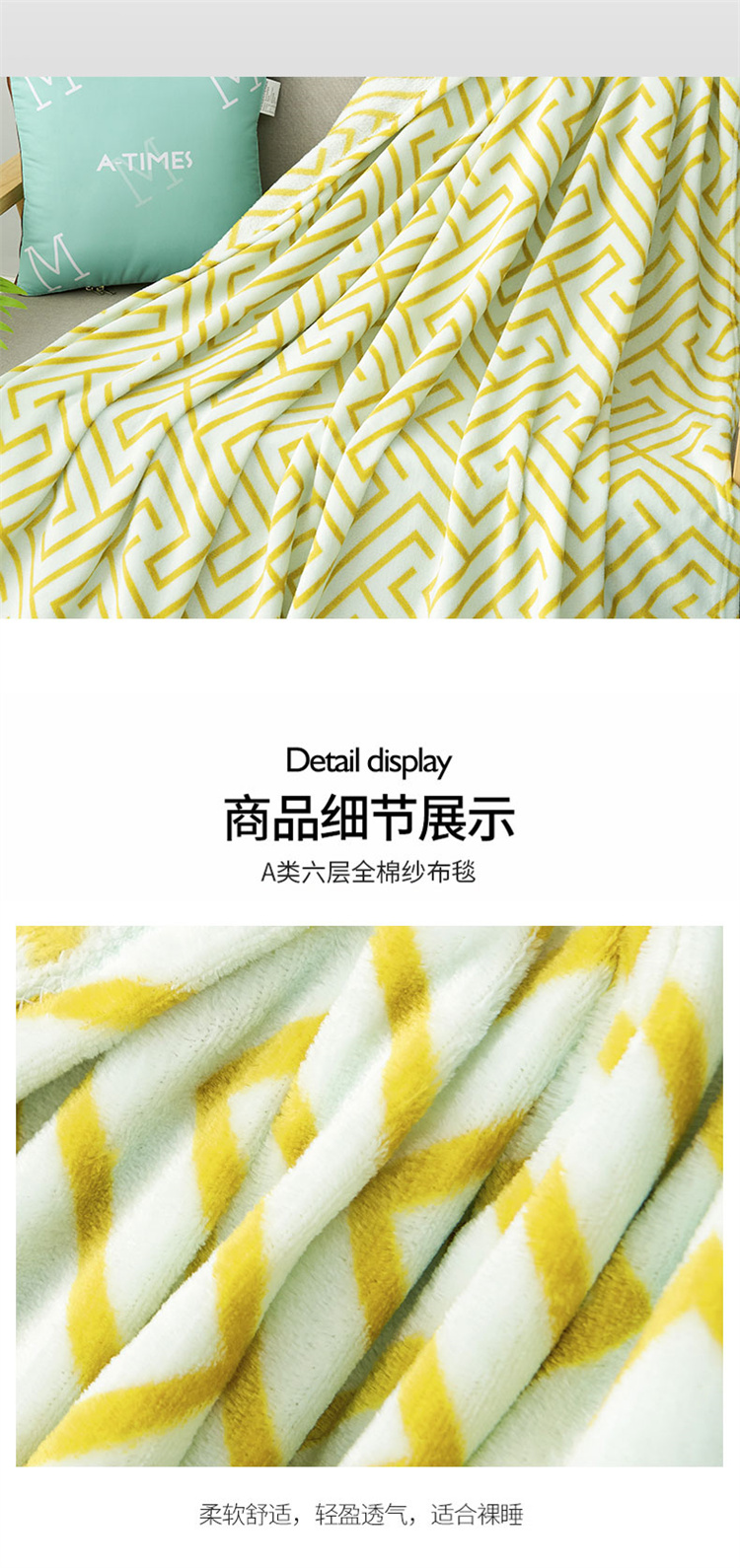 A-TIMES艾菲尔毛毯200*230cmJF-24120(单位:条) 黄色 2米床