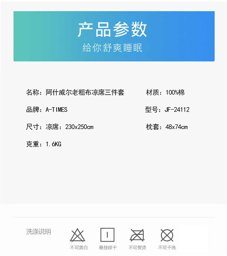 A-TIMES阿什威尔老粗布凉席三件套JF-24112(单位:套) 灰色 2米床