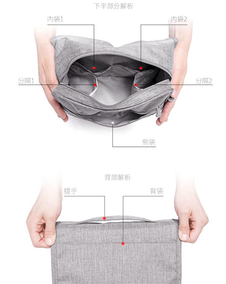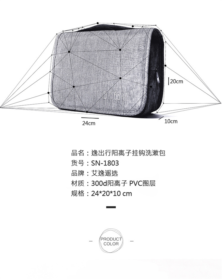 艾逸瑶选 逸出行阳离子挂钩洗漱包 SN-1803 24*20*10cm(单位:个) 灰色