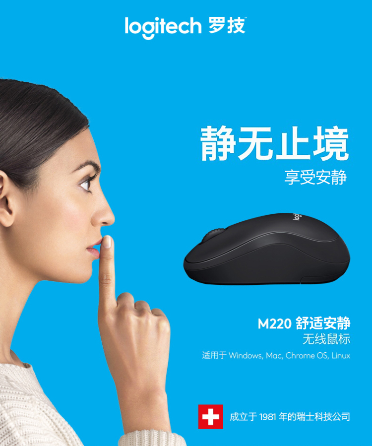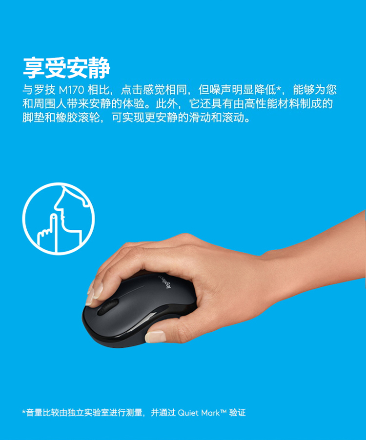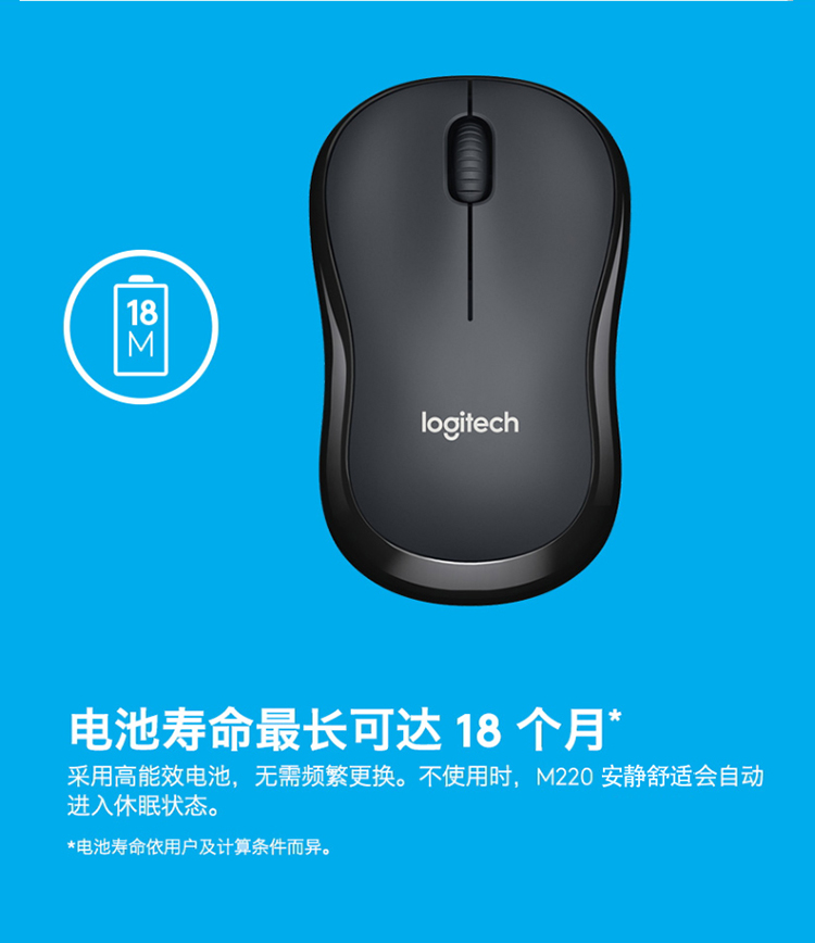 罗技(Logitech)鼠标 M220静音无线鼠标笔记本家用办公省电鼠标造型升级版 灰色 深空灰