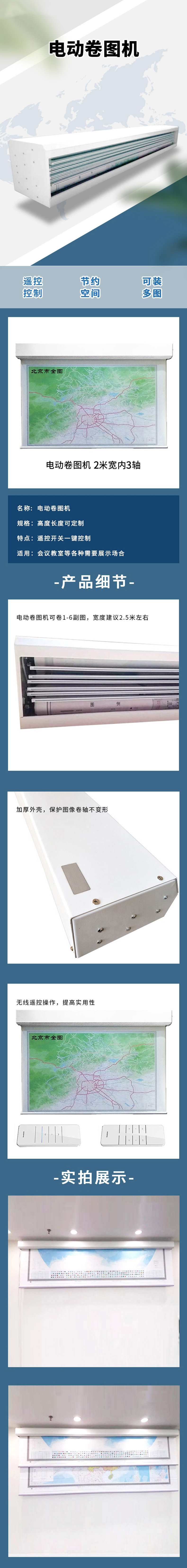 武营坊 遥控智能挂图机电动地图机升降循环式卷轴高清地图自动卷图机 宽2m内3轴 白色