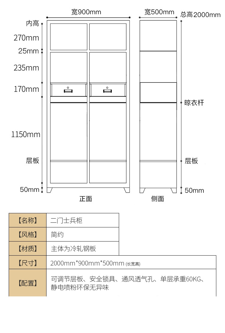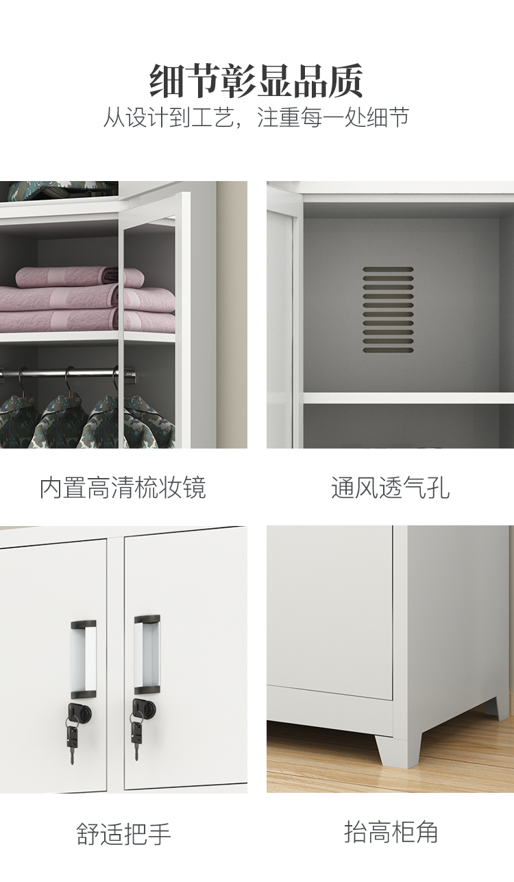维仕蓝/Wissblue 更衣柜士兵柜宿舍士兵衣帽物品柜铁皮储物柜二门更衣加顶柜 不锈钢色
