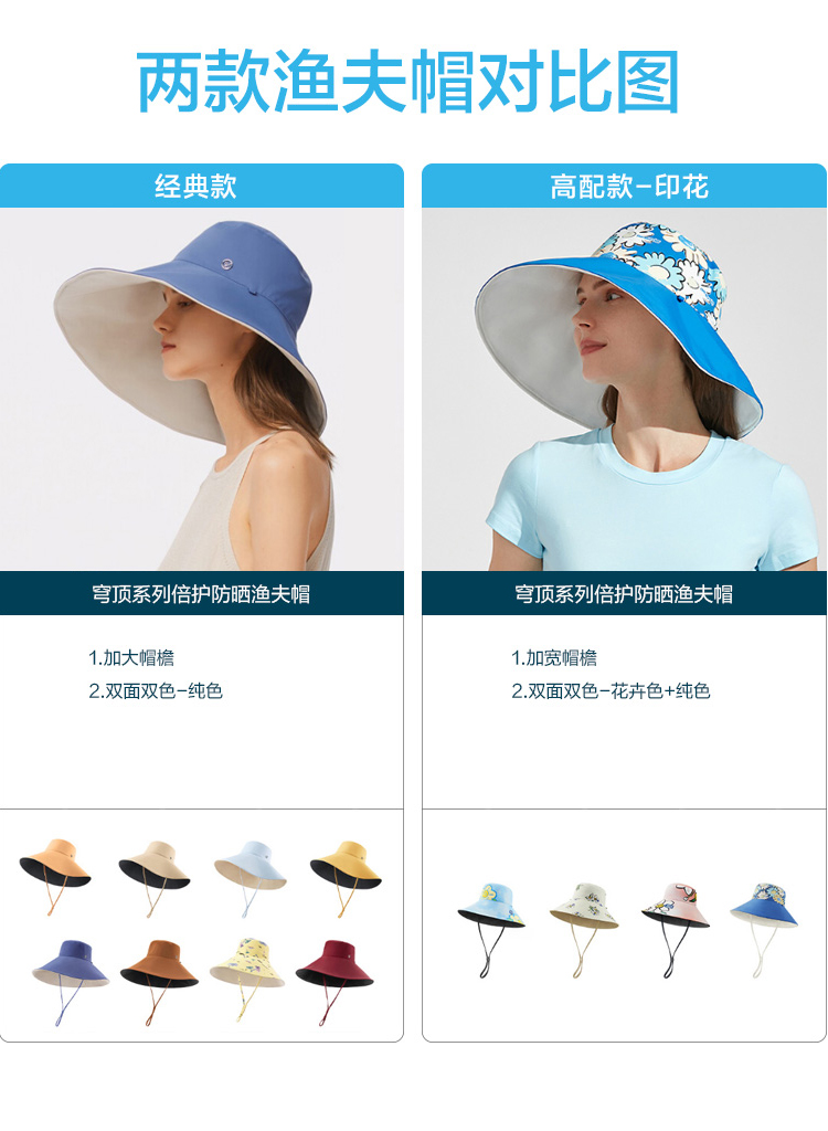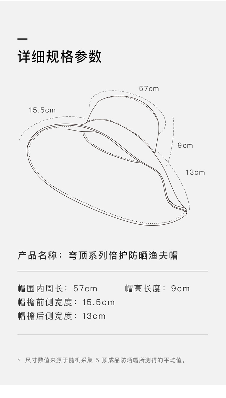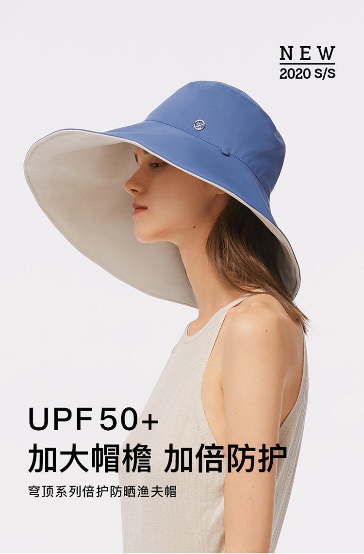蕉下(beneunder)UPF50+防紫外线大檐帽穹顶-倍护渔夫帽(单位:个) 石洗蓝