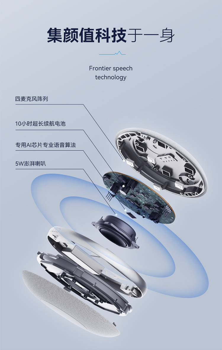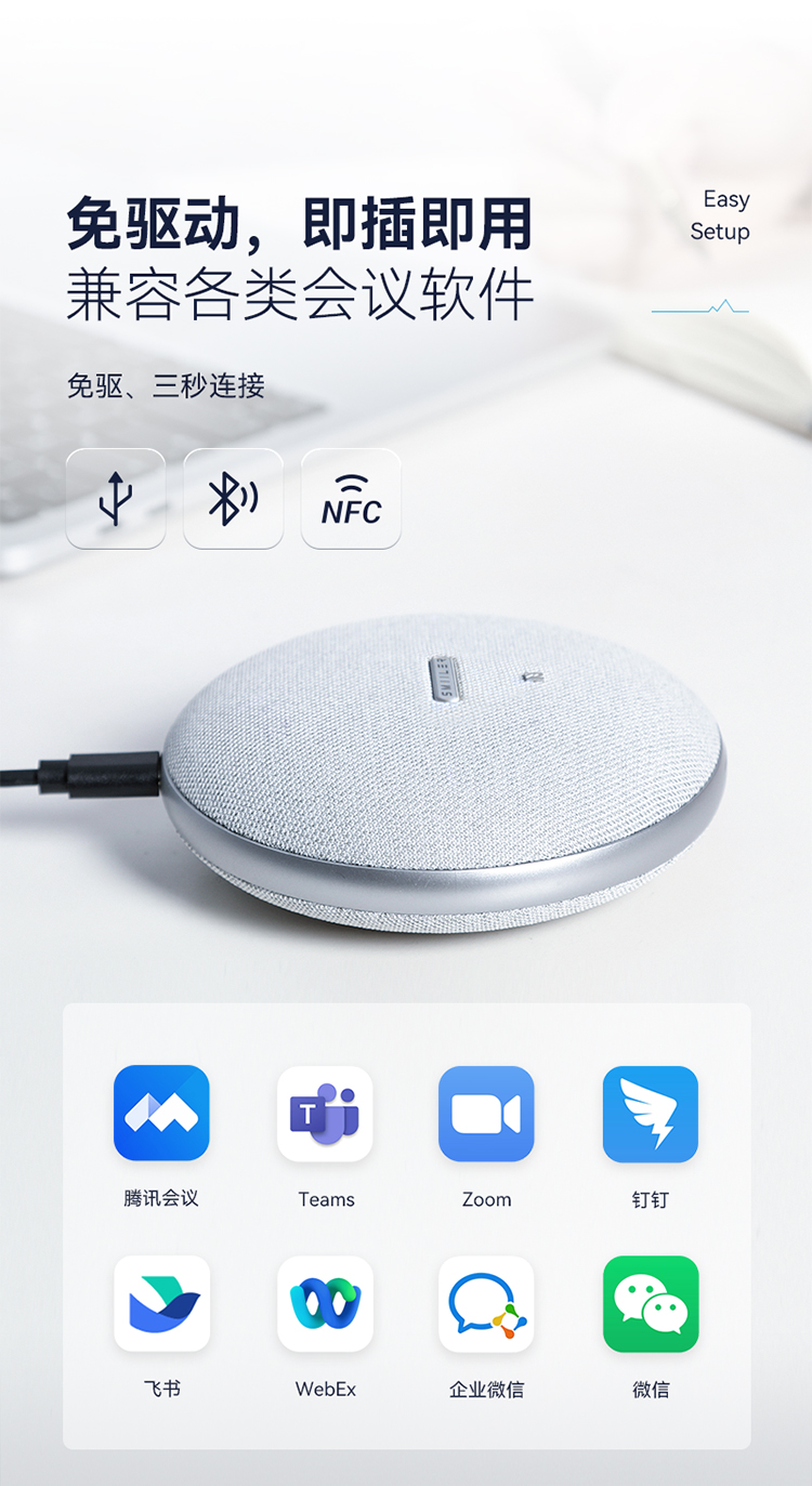 思必驰 全向麦克风360度降噪视频会议麦克风音箱智能降噪录音话筒扬声器无线连接拾音免费语音转写 黑色