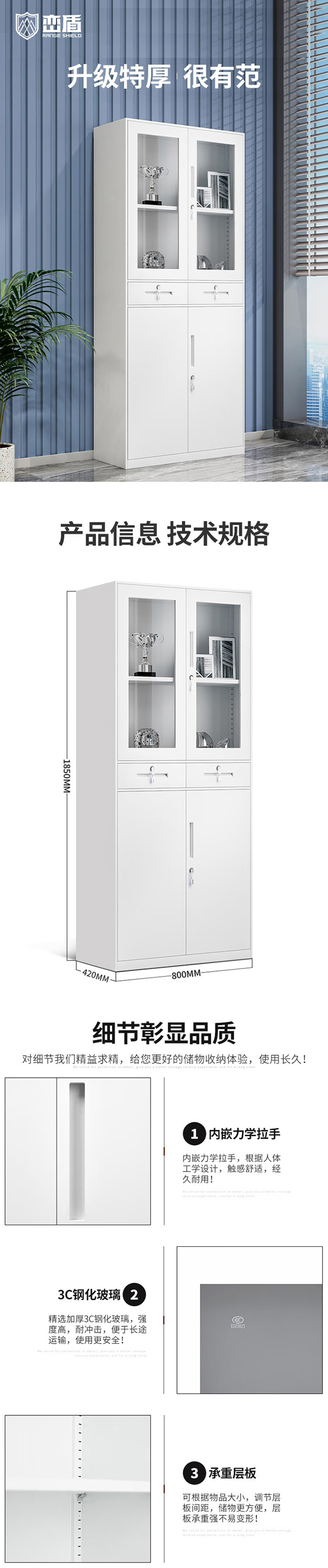 峦盾 LD-GD-01 密码文件柜(玻璃门) 浅灰色