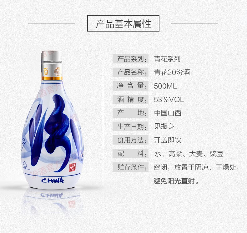 汾酒青花20年53度清香型 500ml*6瓶整箱装