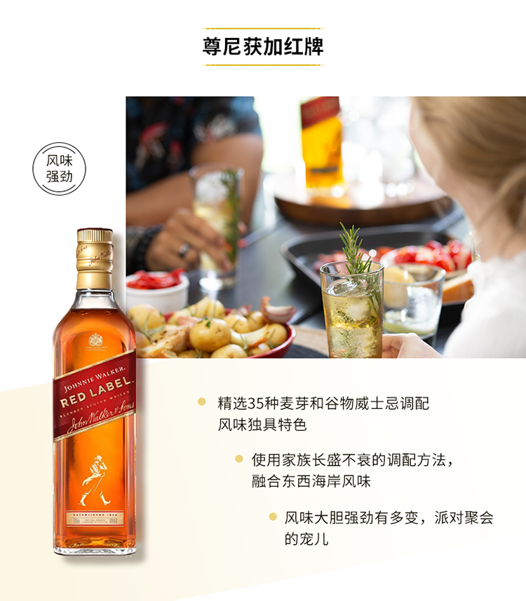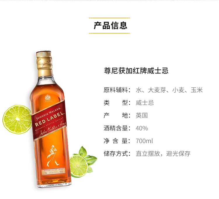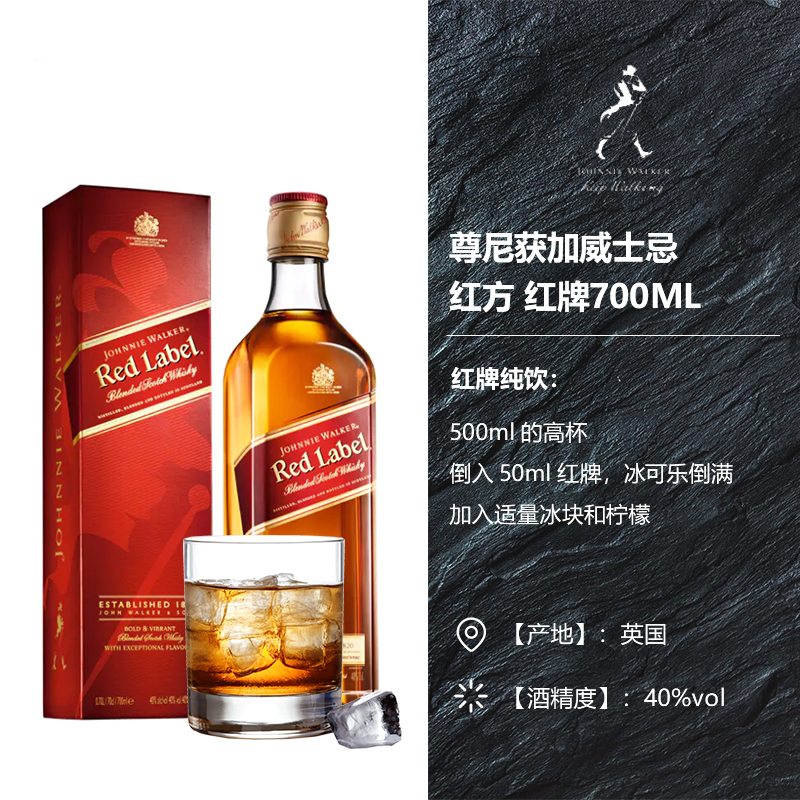 尊尼获加 红牌 威士忌 700ml/瓶 单瓶