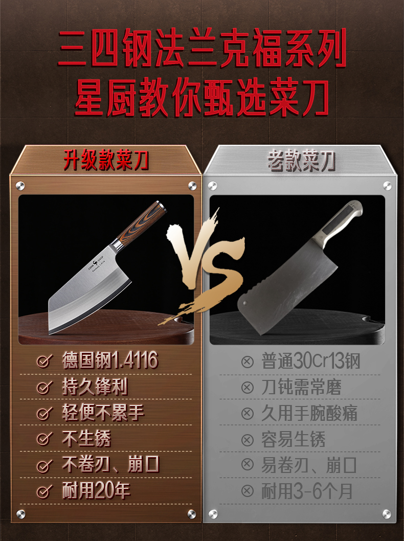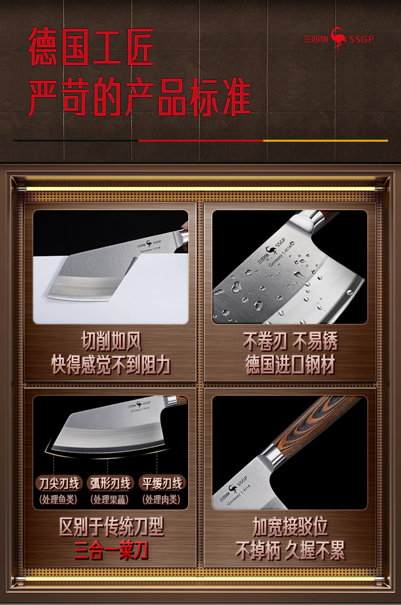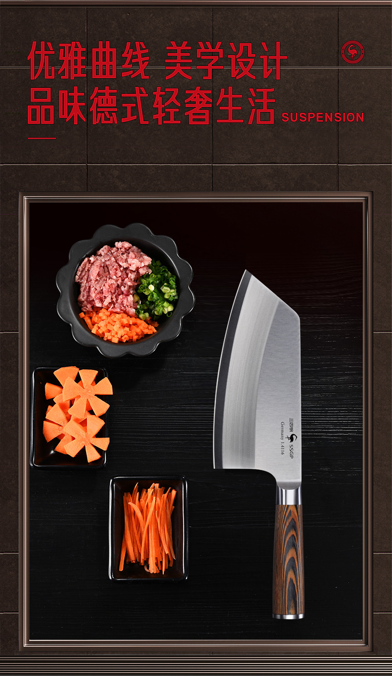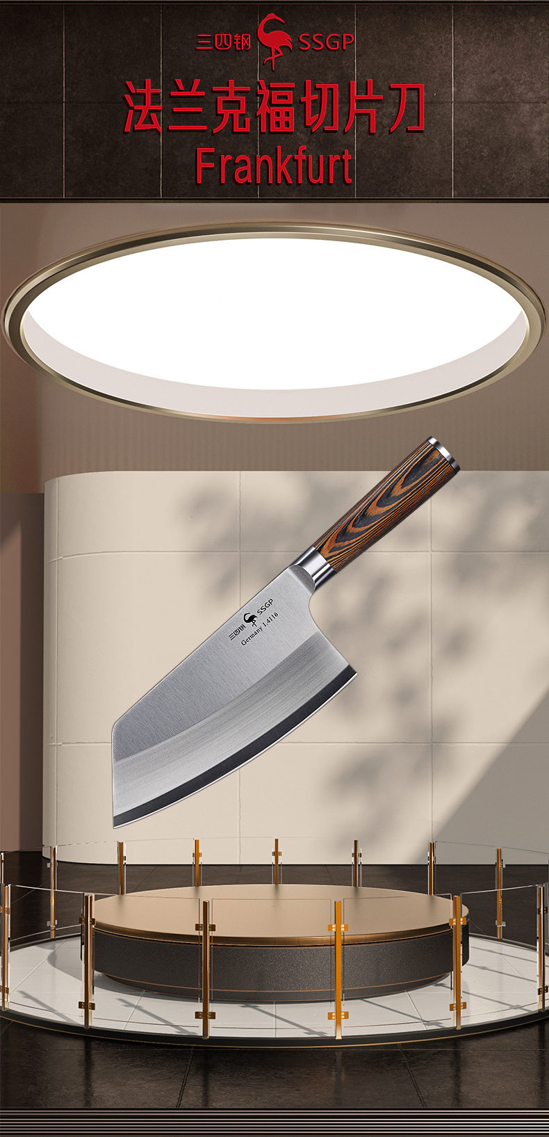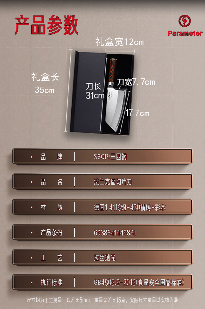 叁肆钢(SSGP)法兰克福切片刀03932 木色