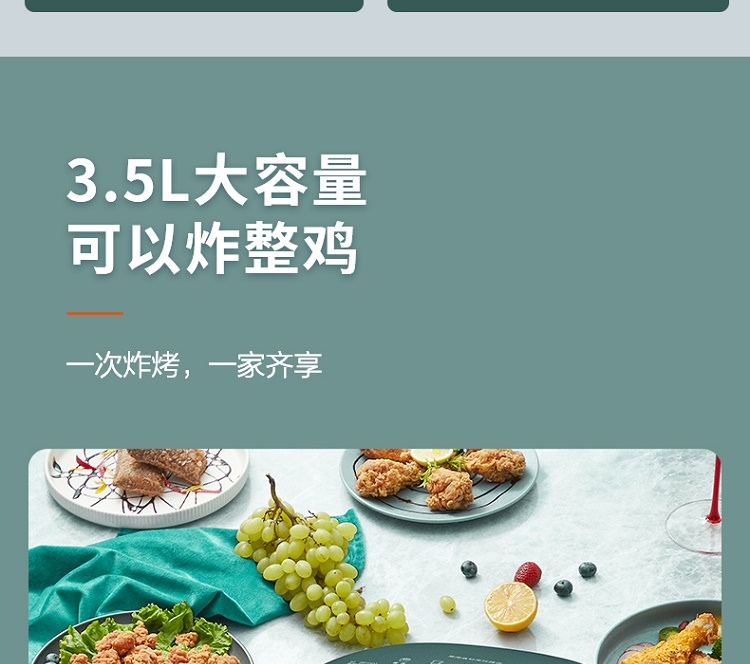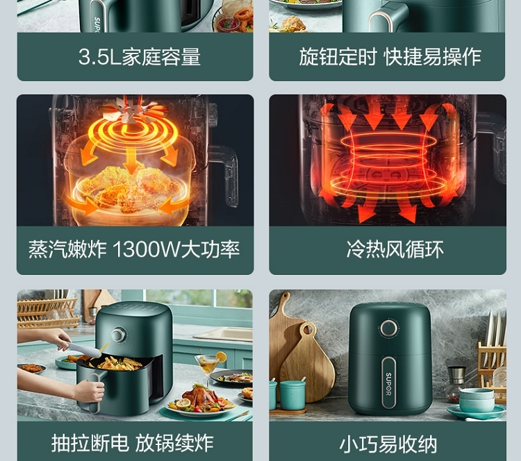 苏泊尔(SUPOR) KJ35D701 3.5L 双循环系统空气炸锅 莫兰迪绿(单位:台)
