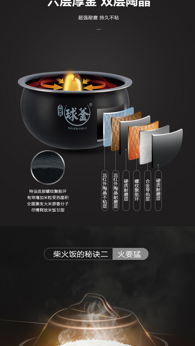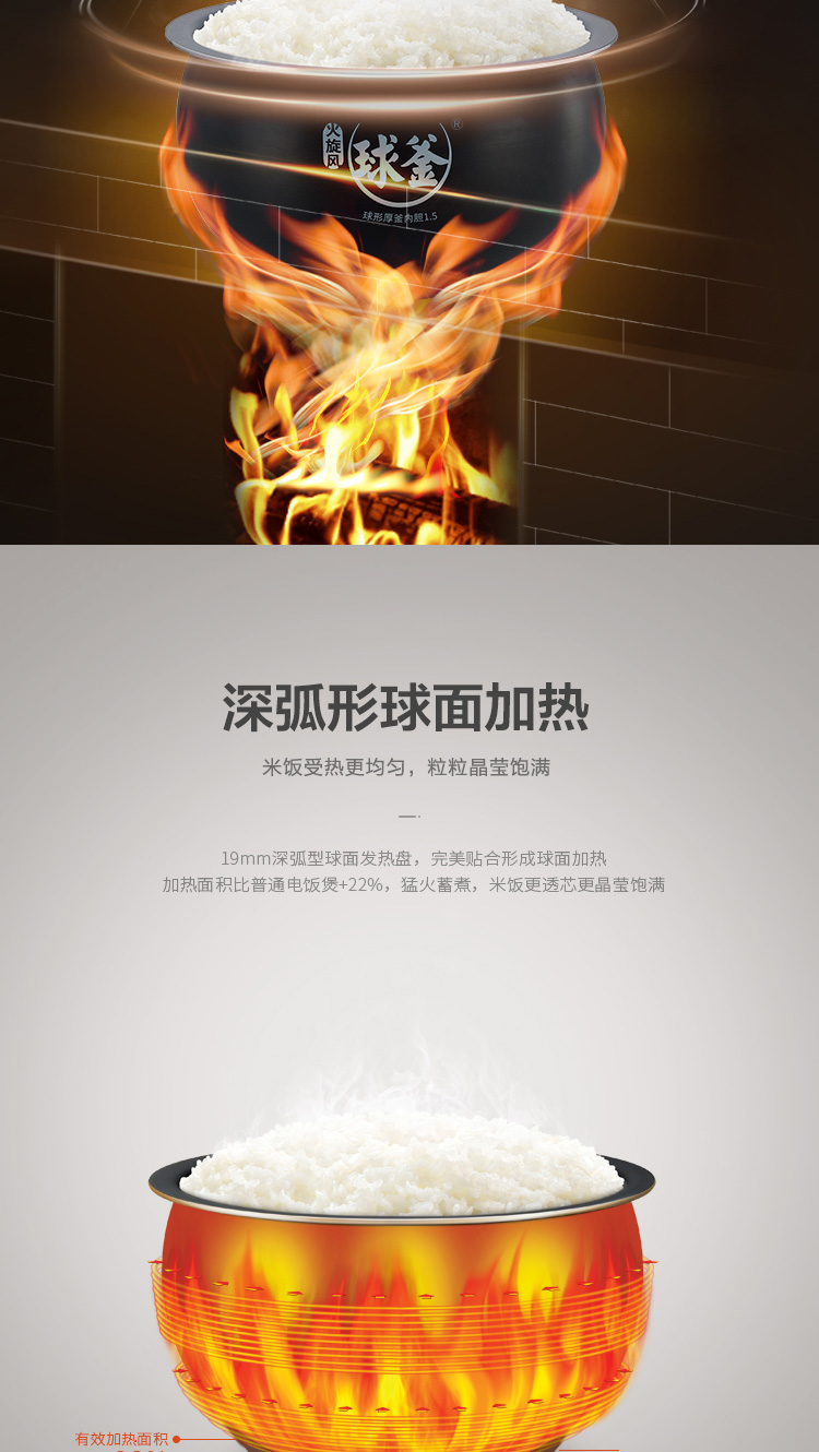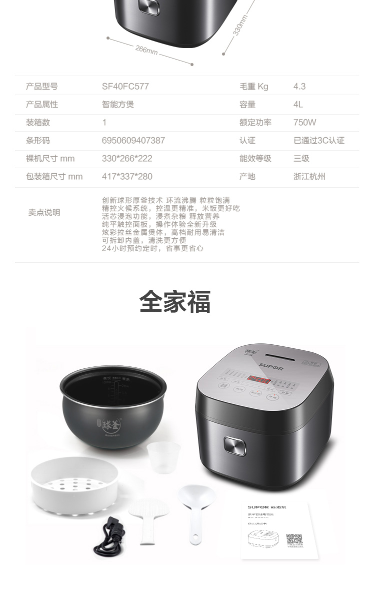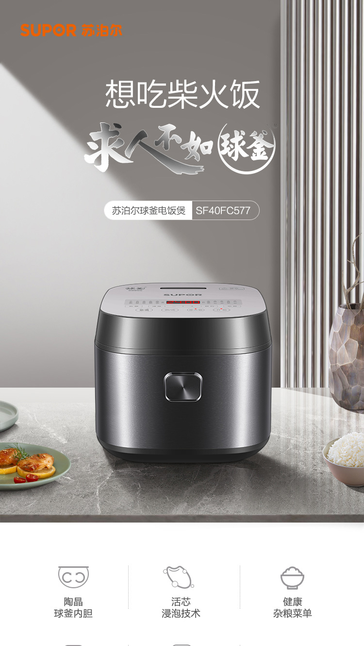 苏泊尔(SUPOR)QC系列 电饭煲球釜4L家用电饭锅智能预约不沾内胆 SF40FC577单位:台 黑色