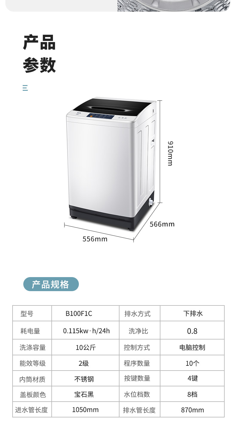 TCL 全自动波轮洗衣机 B100F1C 10公斤(单位:台)白色 白色