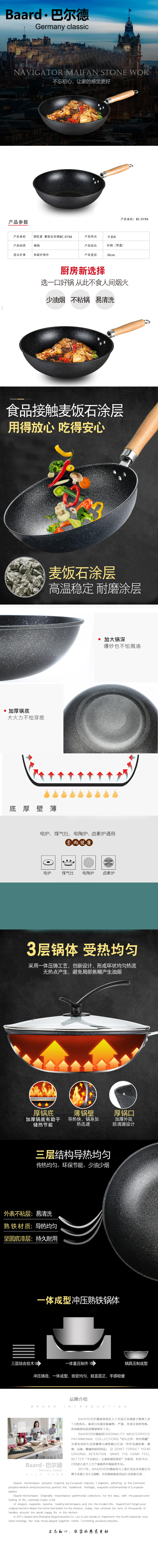 巴尔德 领航者麦饭石炒锅 BC-019A 30CM 6L(单位:个) 黑色 黑色