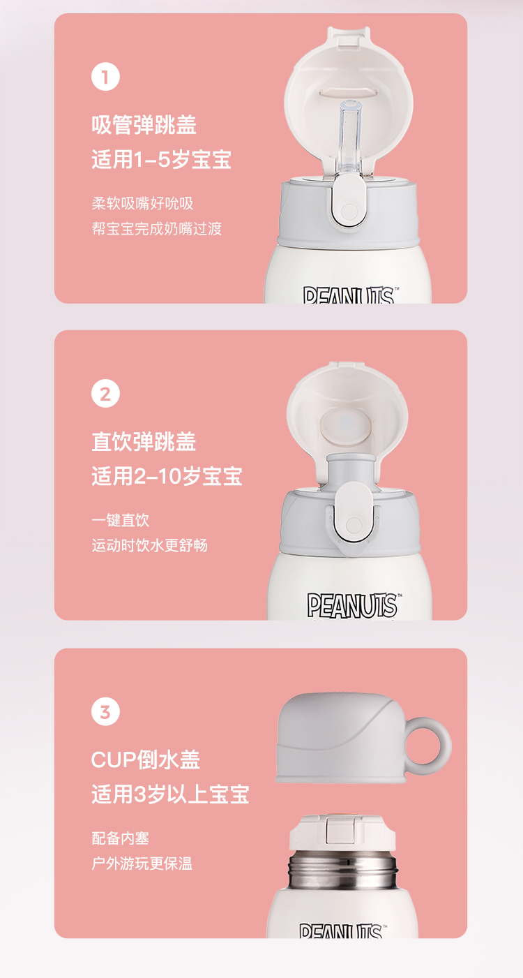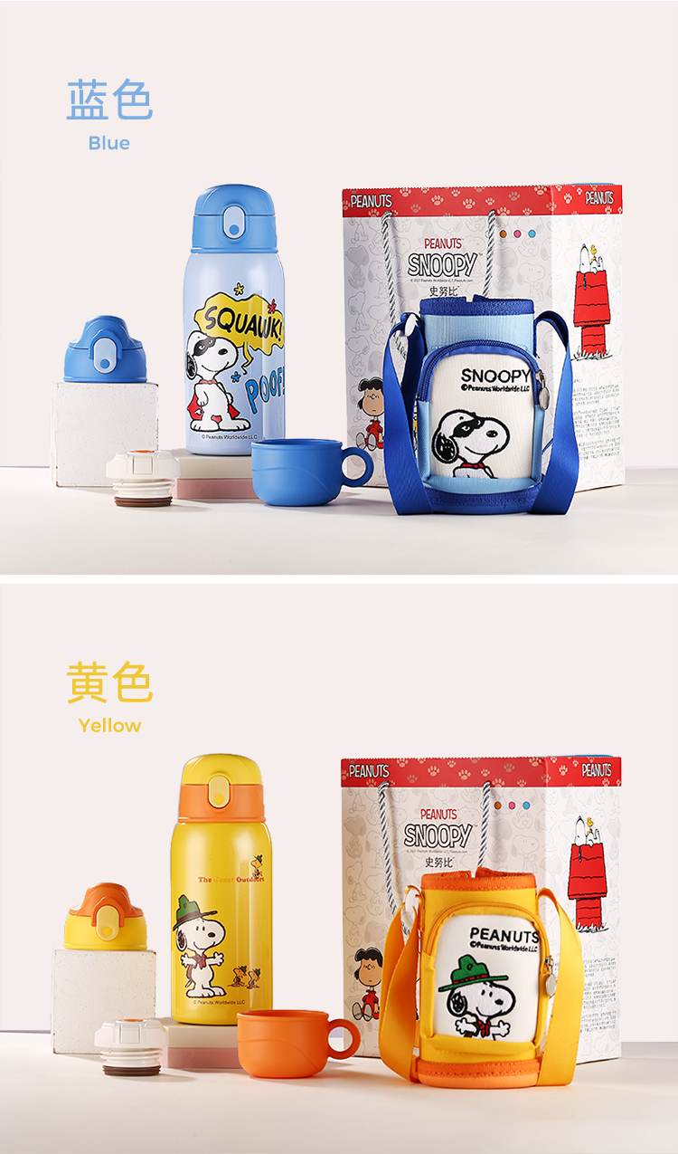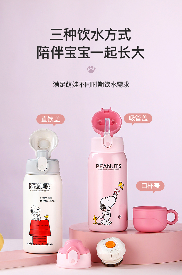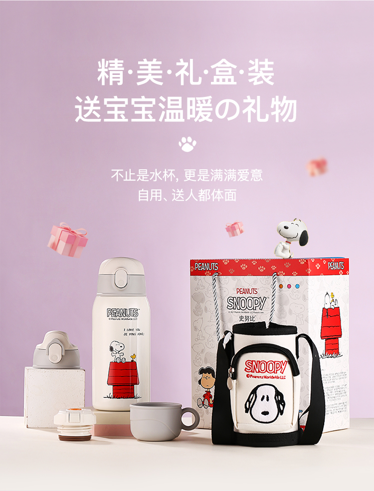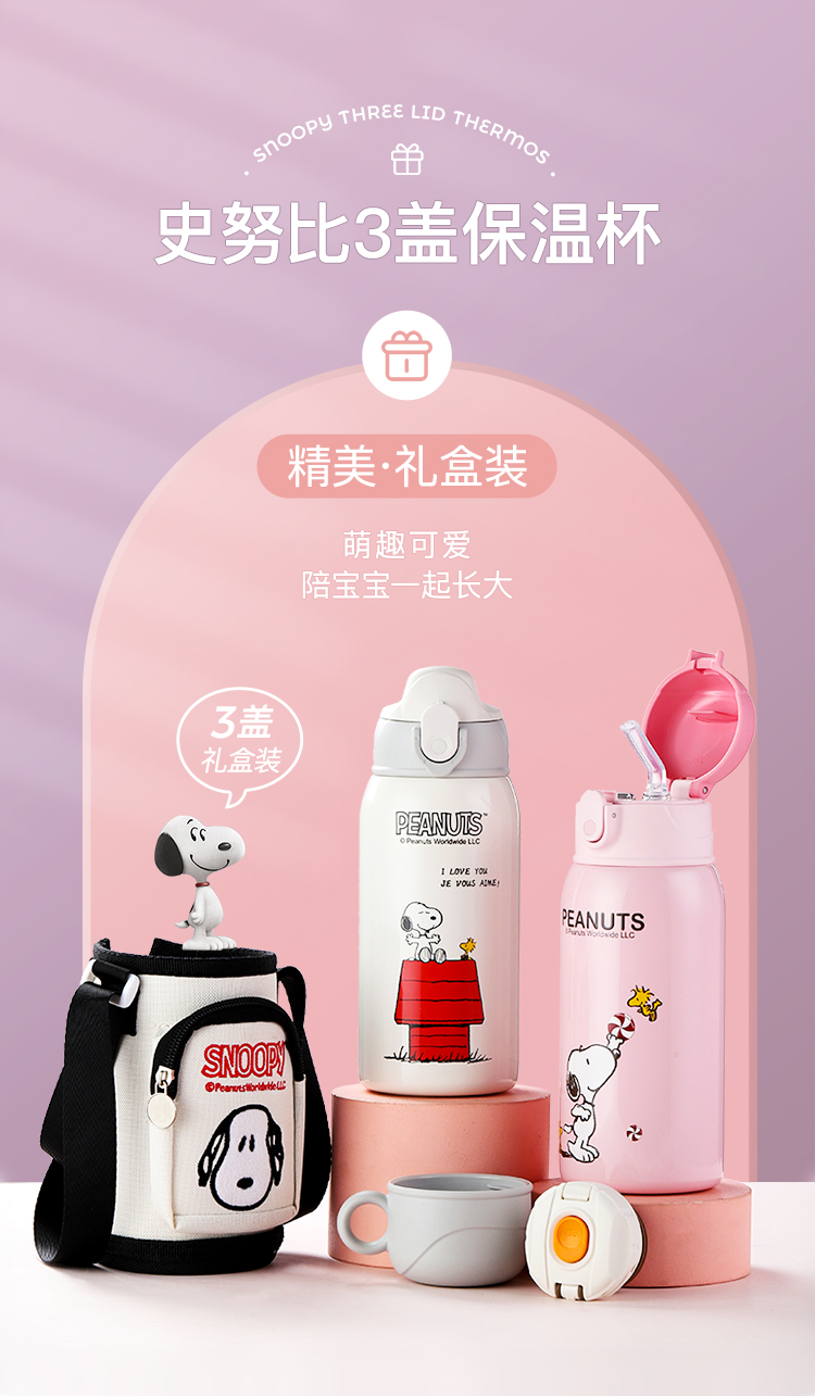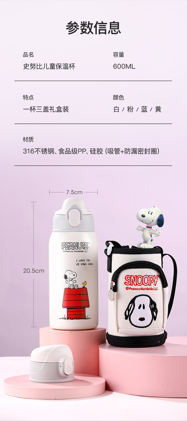 史努比 儿童三盖保温杯礼盒装 600mL SNP6023 (单位:盒) 白色