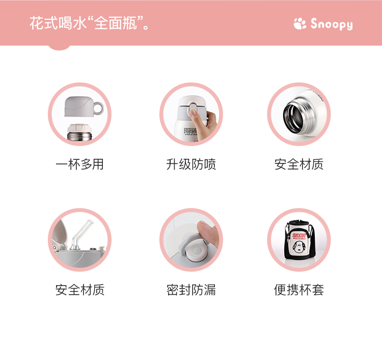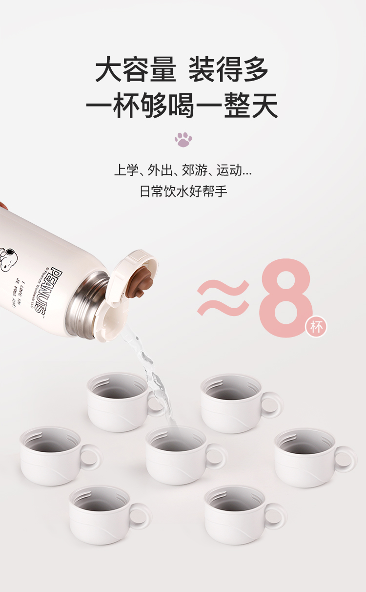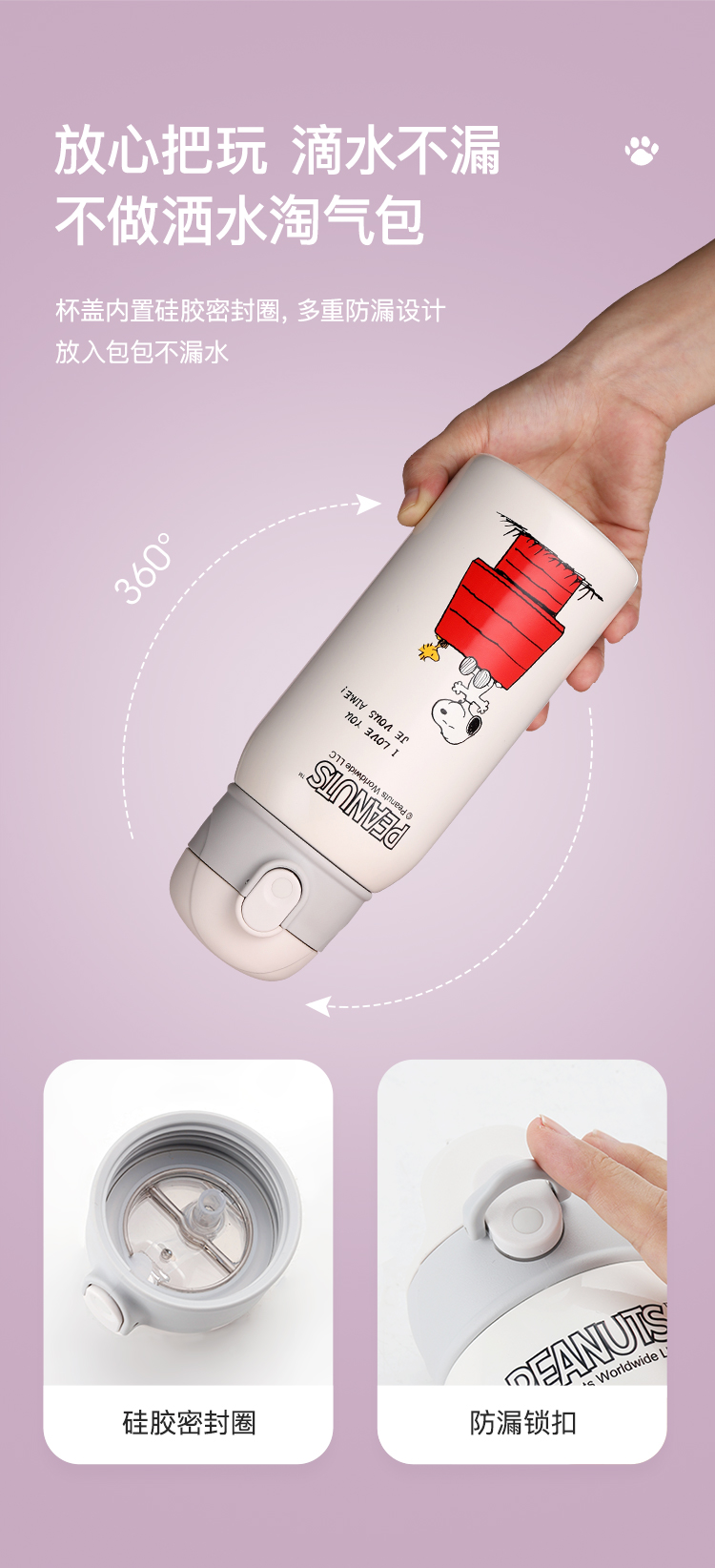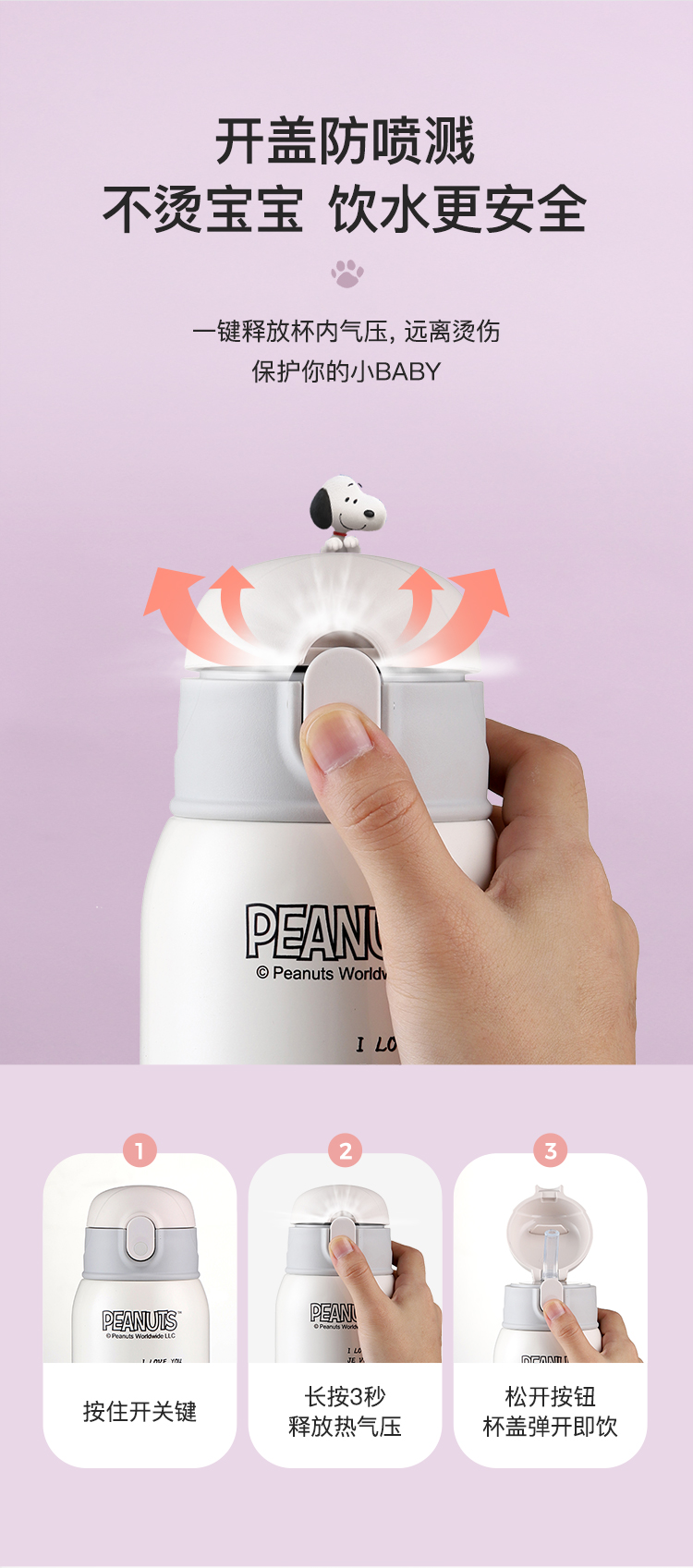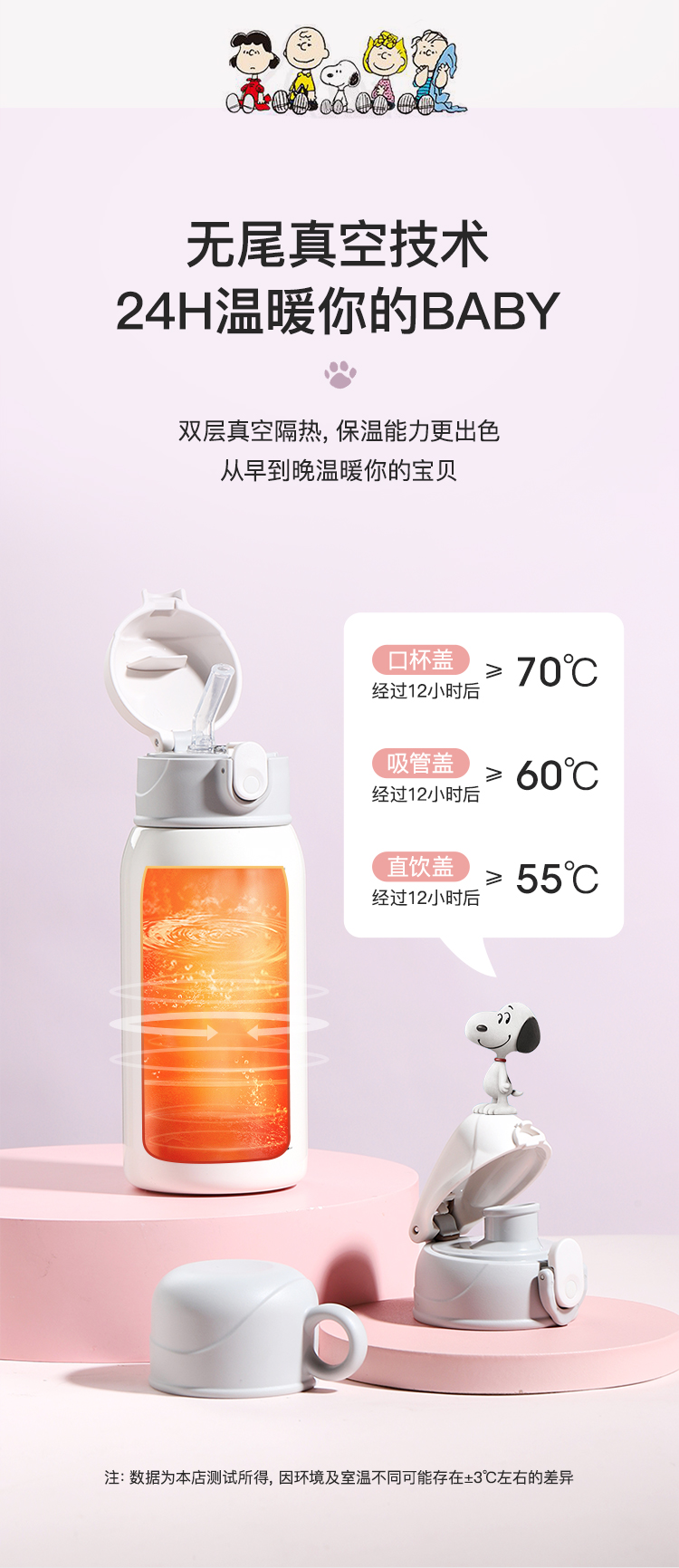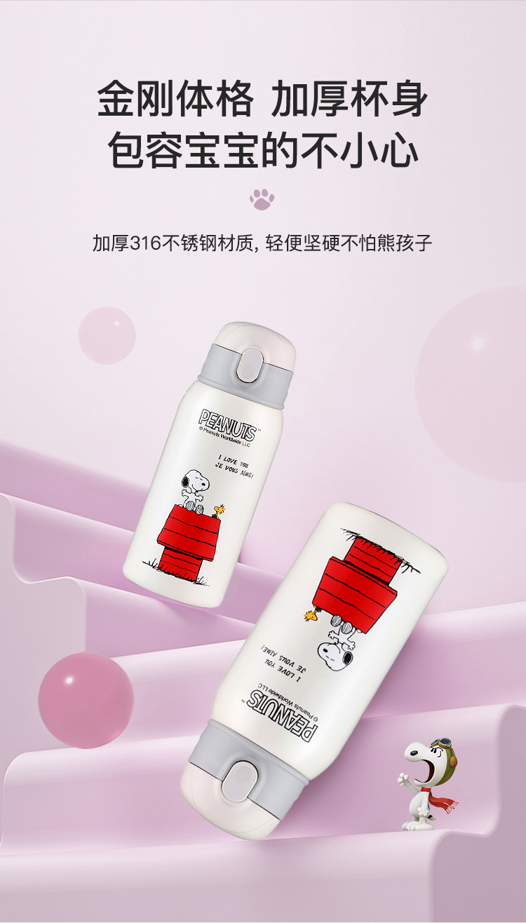 史努比 儿童三盖保温杯礼盒装 600mL SNP6023 (单位:盒) 白色