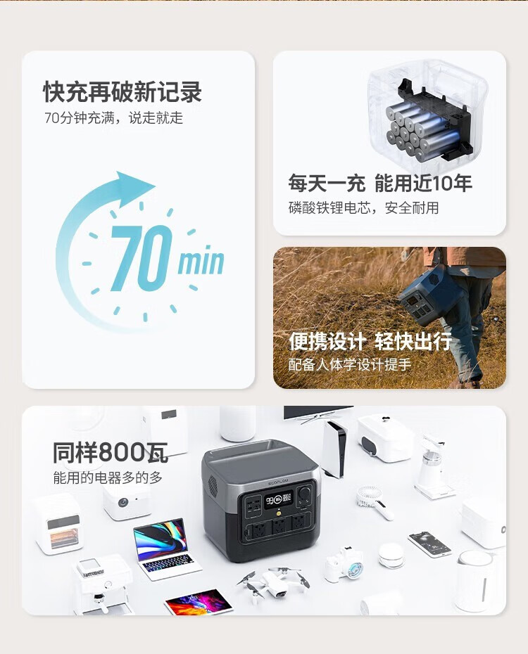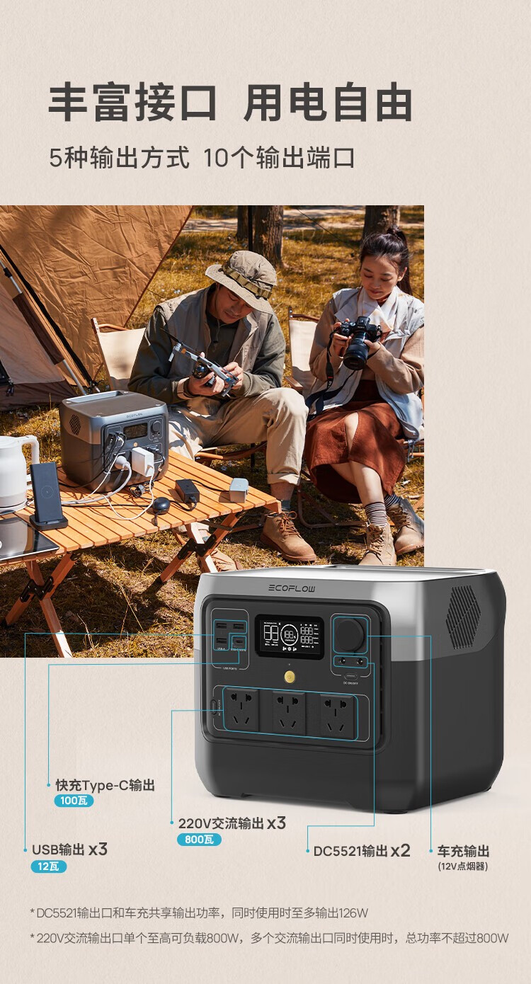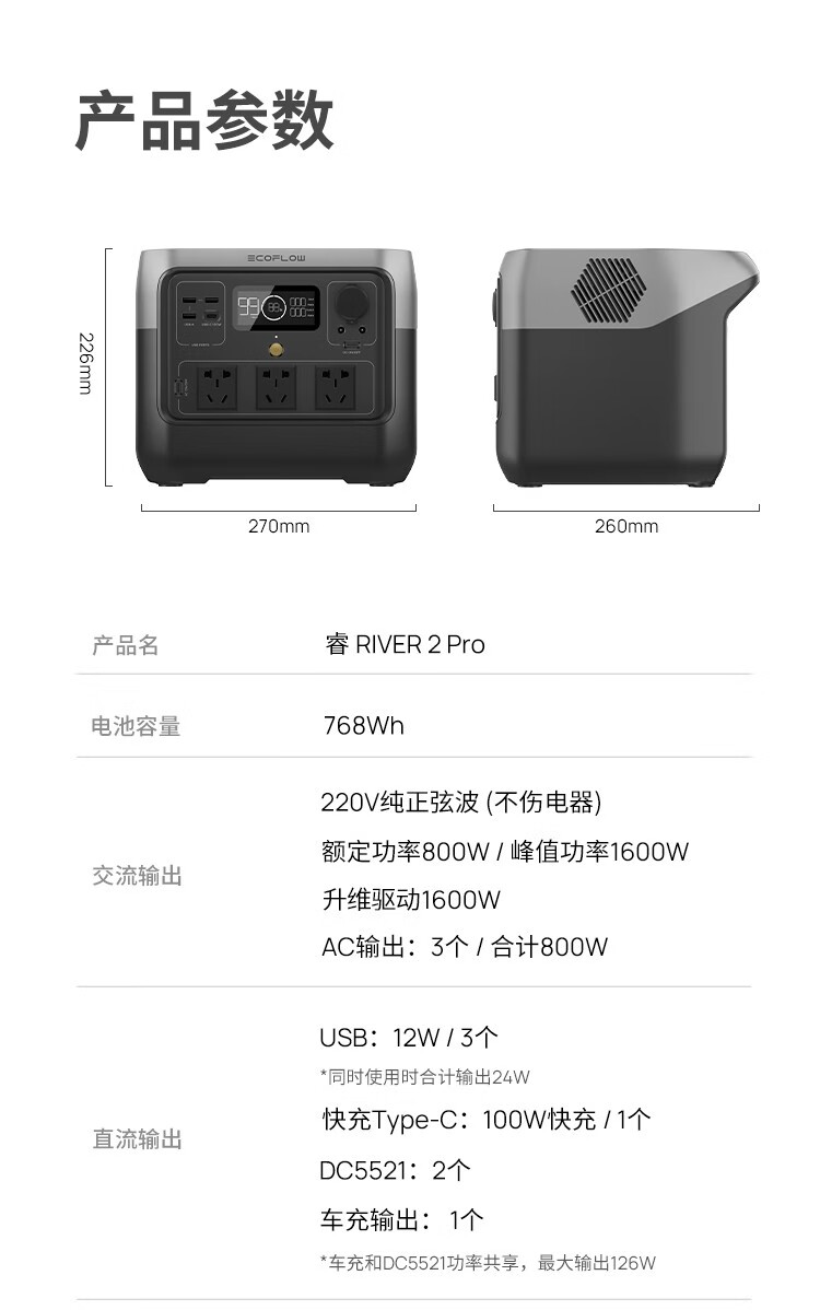 ECOFLOW【新品】正浩快充户外电源70分钟充满移动便携自驾露营储能应急 睿 RIVER 2 Pro【800w-768WH】 个 黑色