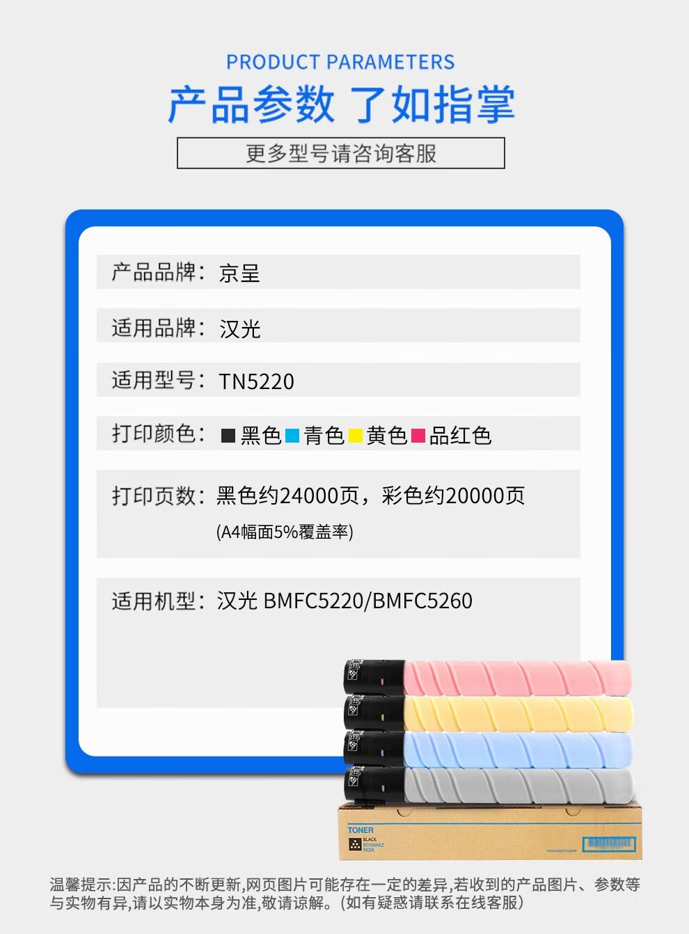 京呈适用汉光TN5220粉盒复合机BMFC5220/C5260碳粉TN5260硒鼓墨盒 TN5220 四色套装粉盒/套