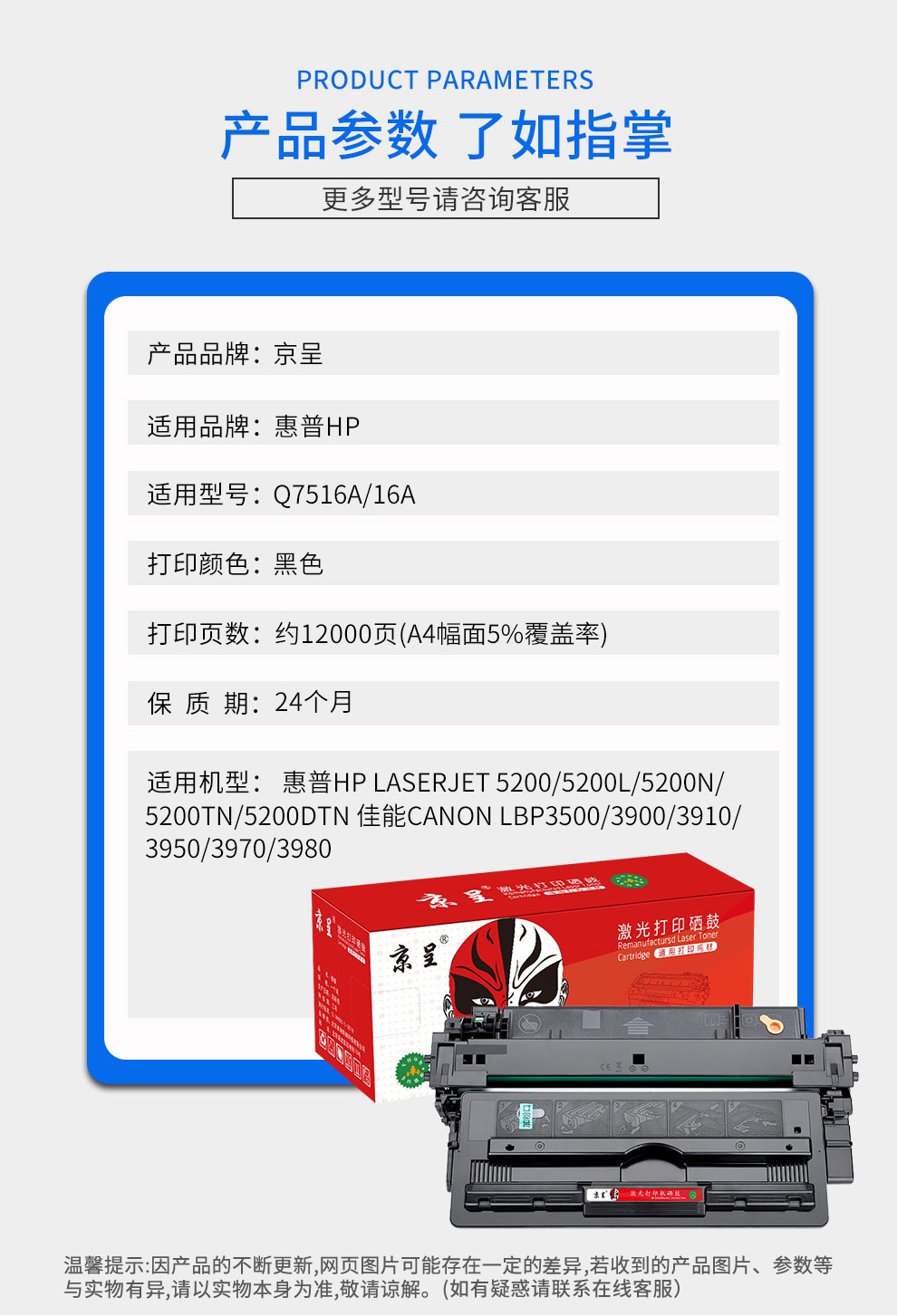 京呈Q7516A硒鼓惠普hp 5200Lx 5200n 5200TN 5200dtn打印机16A墨盒 Q7516A/16A硒鼓 单支装 Q7516A/16A硒鼓 单支装