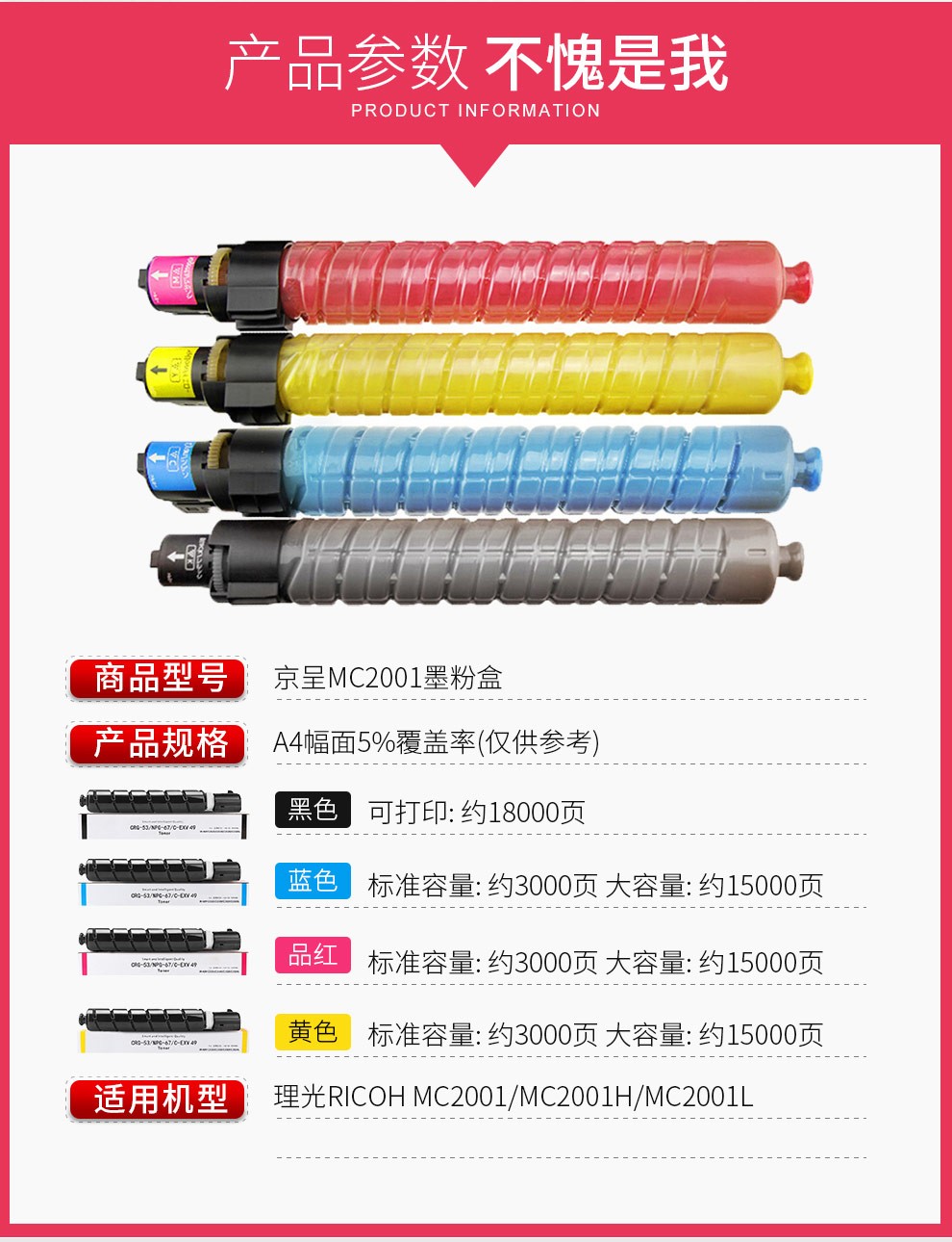 京呈M C2001型粉盒适用理光RICOH M C2001ew墨粉盒MC2000HC打印机硒鼓墨粉盒 MC2001/MC2000黑色大容量/支