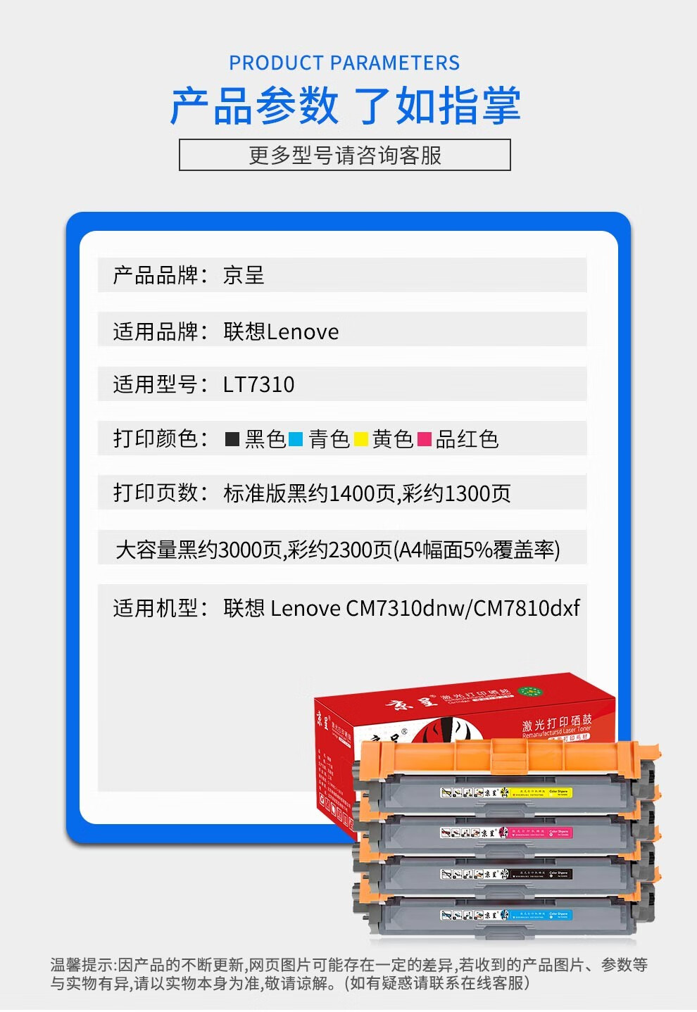 京呈适用联想LT7310粉盒cm7310dnw碳粉盒cm7810dxf墨盒黑红黄蓝色多功能打印一体机 LT7310MH红色粉盒 大容量/支