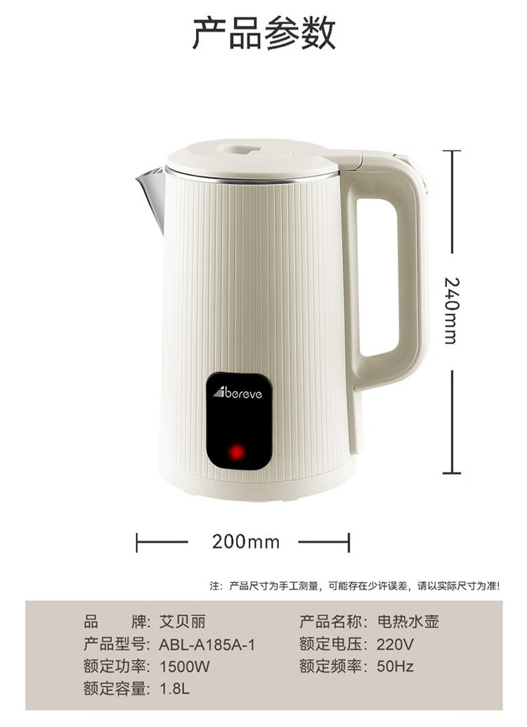 艾贝丽(Abereve) 电水壶 ABL-A185A-1 1.8L 白色(单位:台)