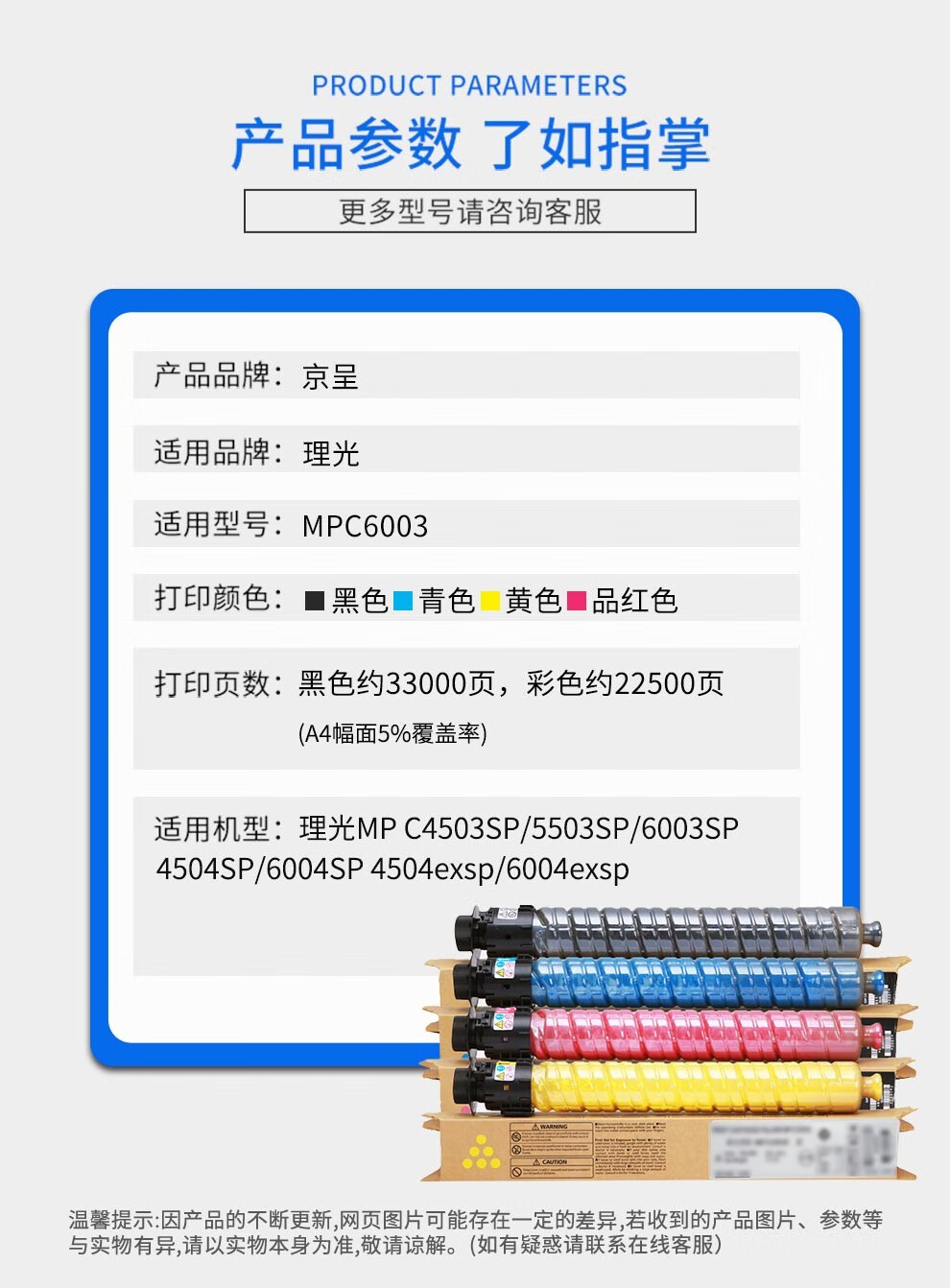京呈适用理光MPC6003粉盒MP C4503SP碳粉C4504exsp墨粉C5503硒鼓C6004 MPC6003黑色粉盒/支
