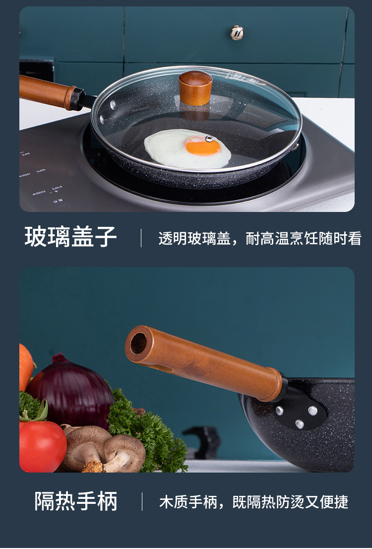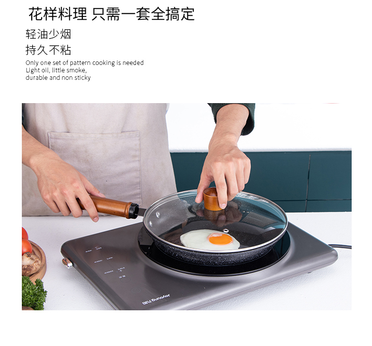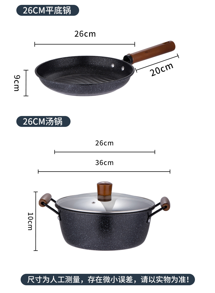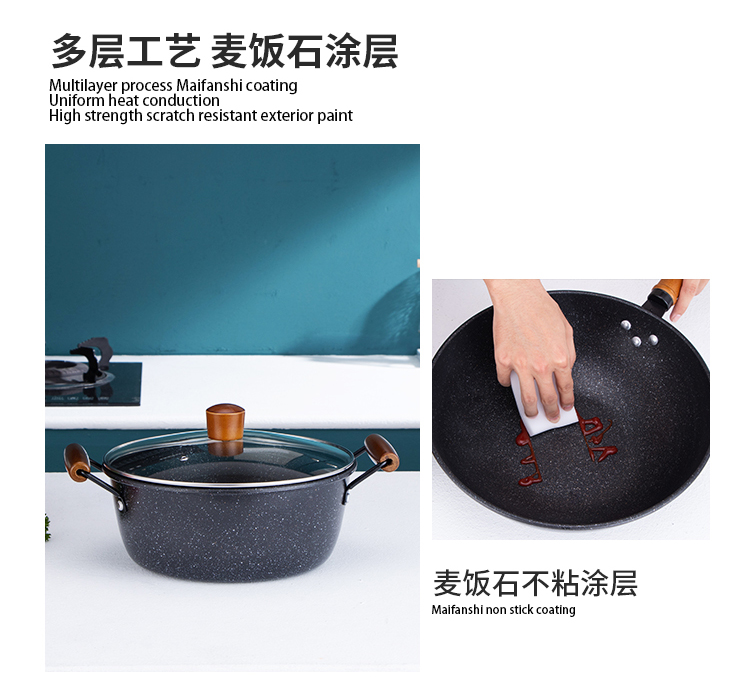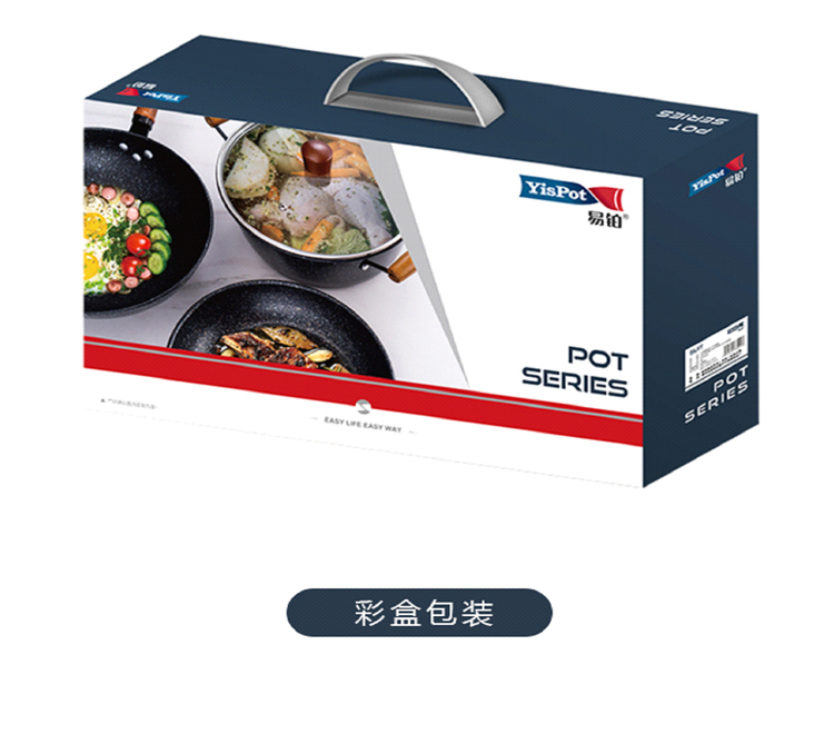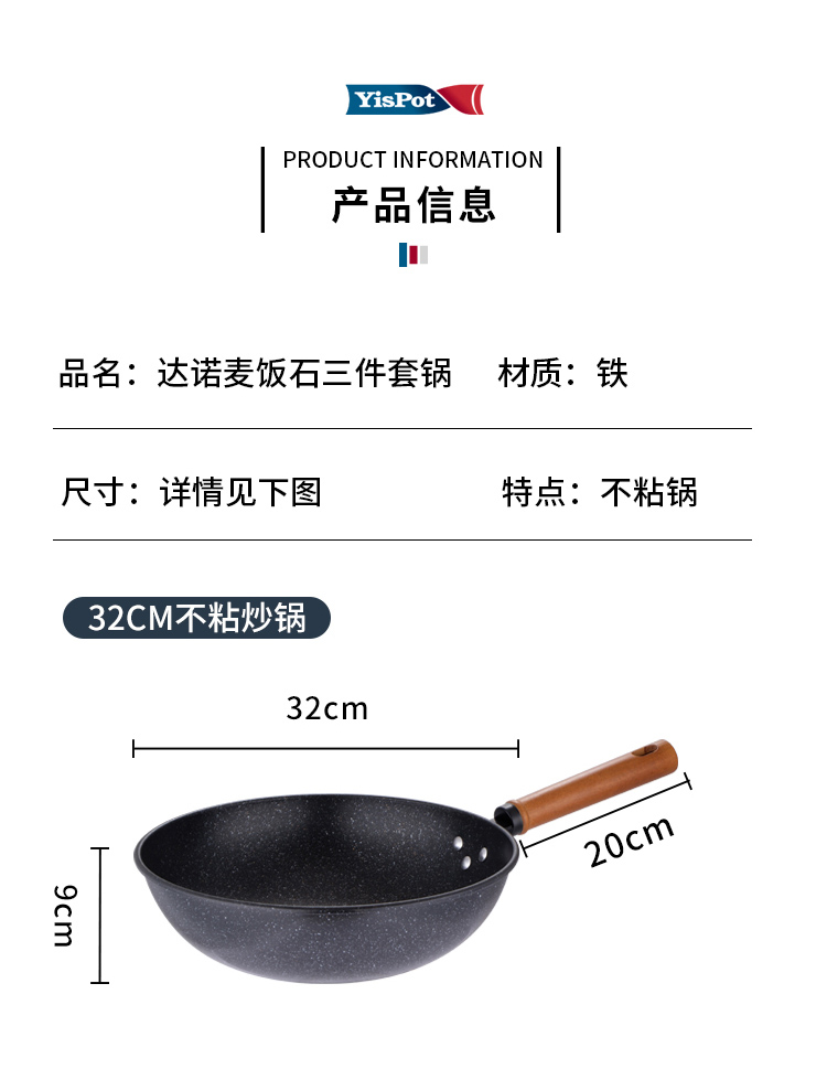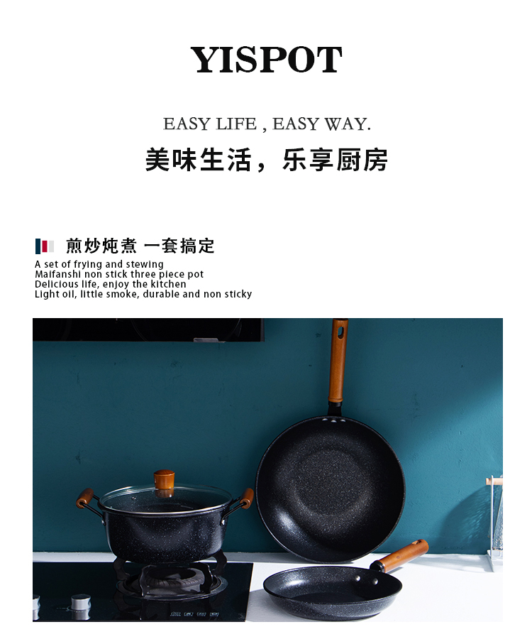 易铂yispot达诺麦饭石三件套锅YP-9043不粘锅26cm煎锅+26cm汤锅+30cm炒锅 黑色