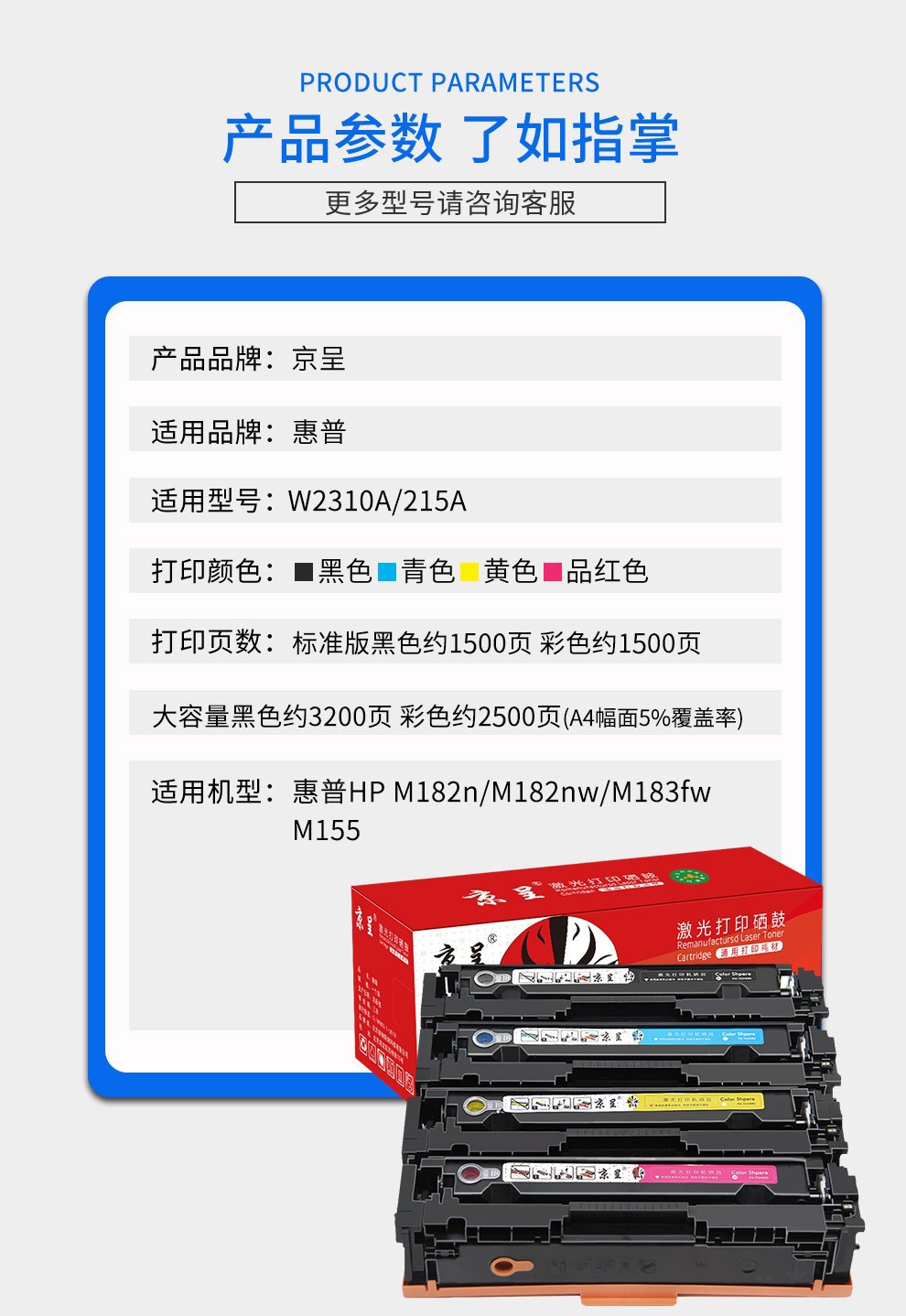 京呈W2310适惠普M183fw硒鼓M182n M182nw M155打印机粉盒MFP M183nw W2310A/215四色套装 无芯片/套