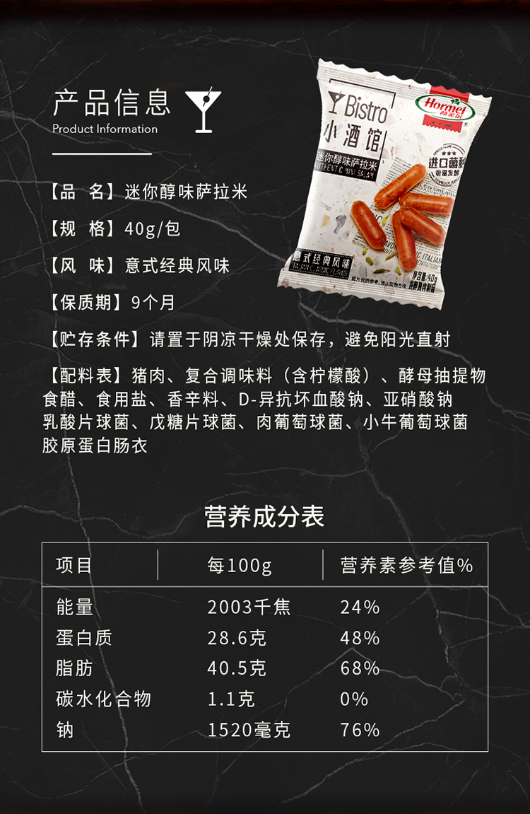 荷美尔迷你醇味萨拉米意式风味40g*6包 自然色 40g
