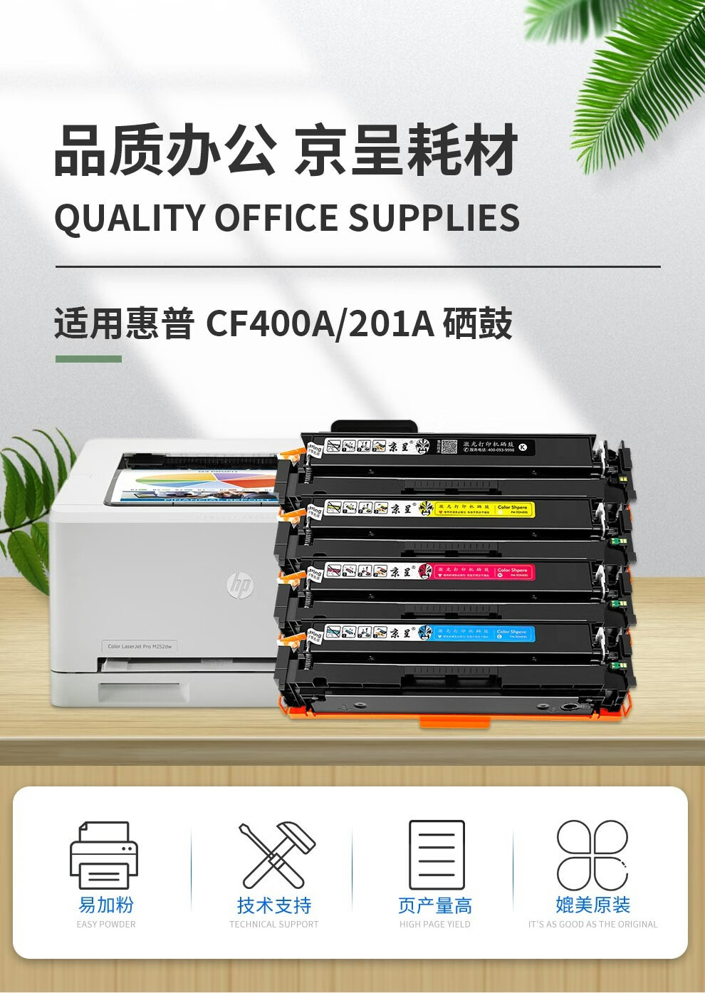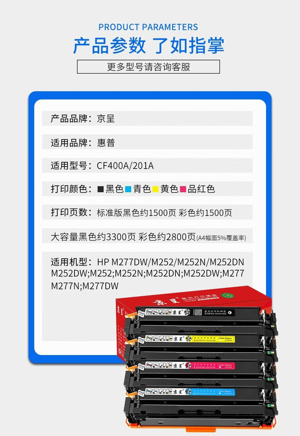 京呈cf400a硒鼓M252DW M277DW墨盒适用惠普彩色打印机硒鼓201A打印机M274n墨粉/支 201A CF401A青色碳粉