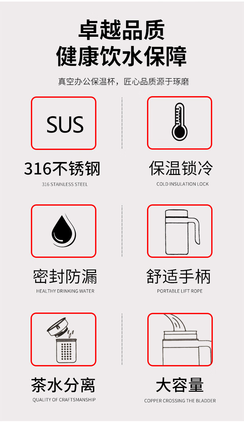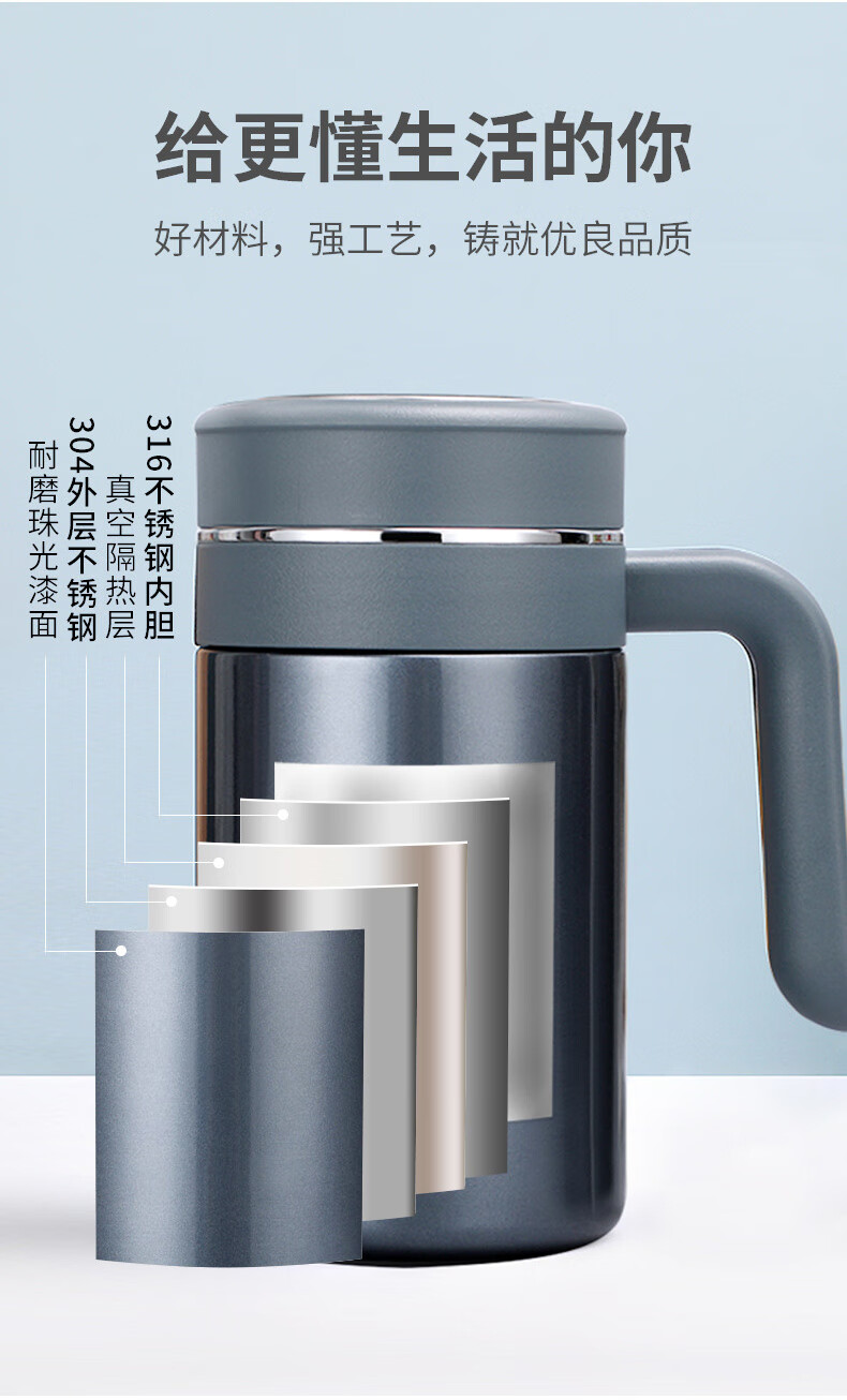 乐搏锐胜LB-3001带把手柄316材质不锈钢办公杯520ML 单位:个 不锈钢色