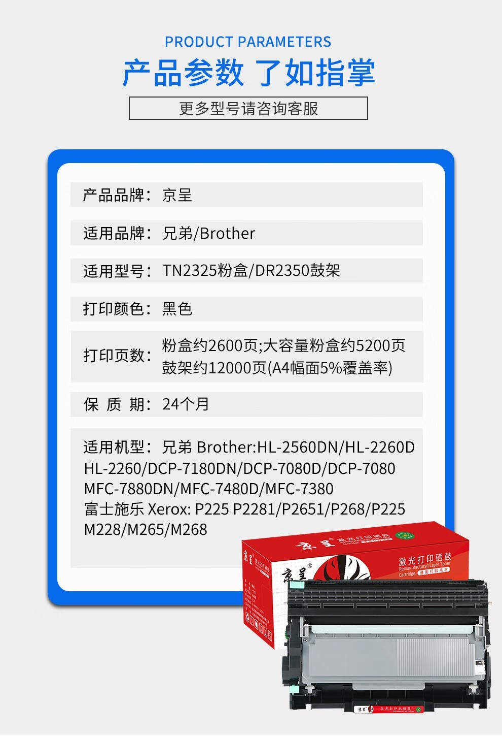 京呈TN2325适用兄弟MFC7380粉盒7880d DCP7080D 7180DN打印机墨盒硒鼓/支 【高清加黑型】TN2325黑色碳粉1支装