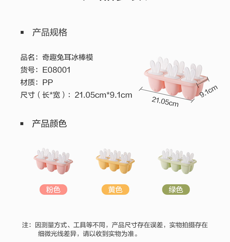 茶花 E08001 奇趣兔耳冰棒模 粉色