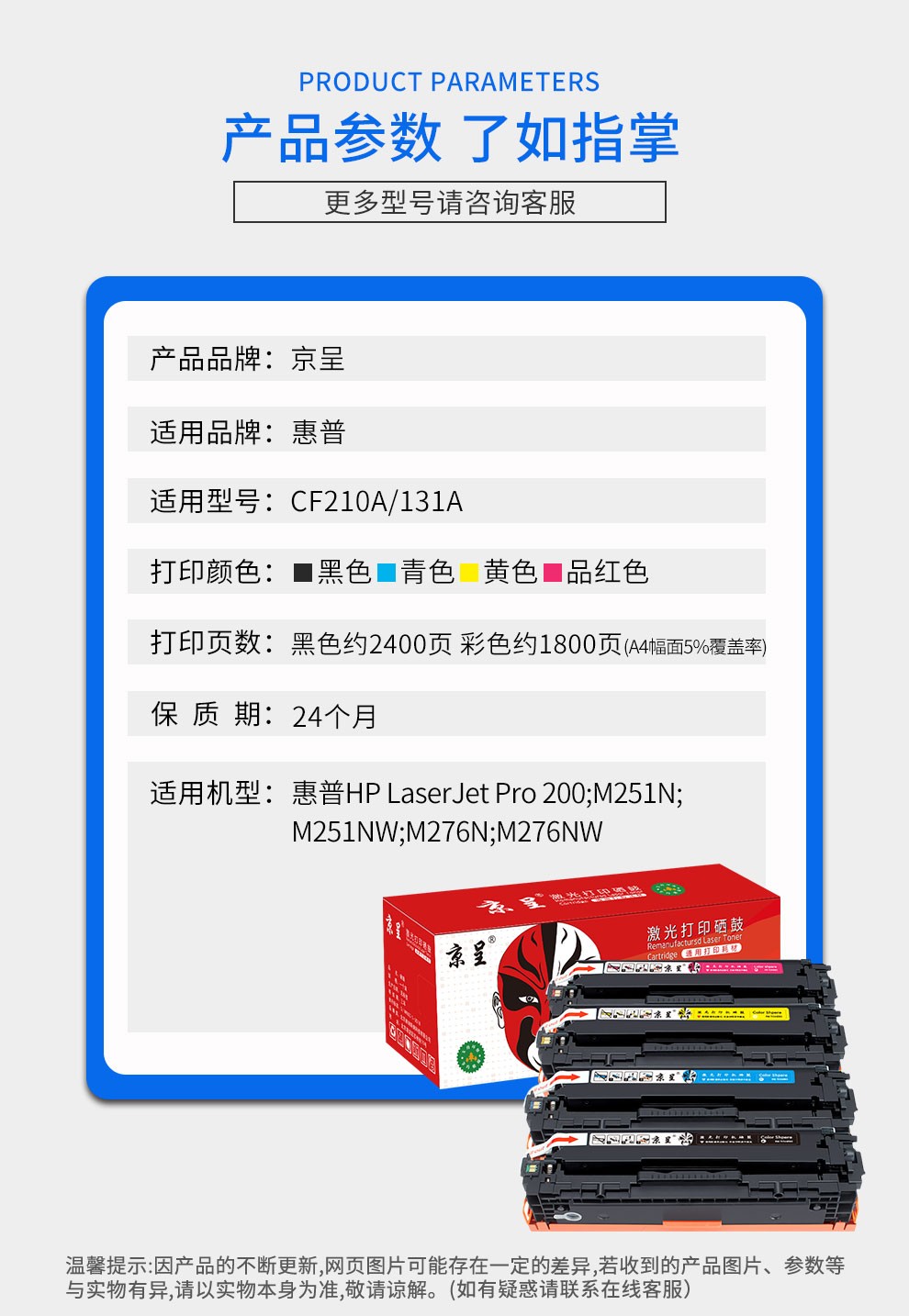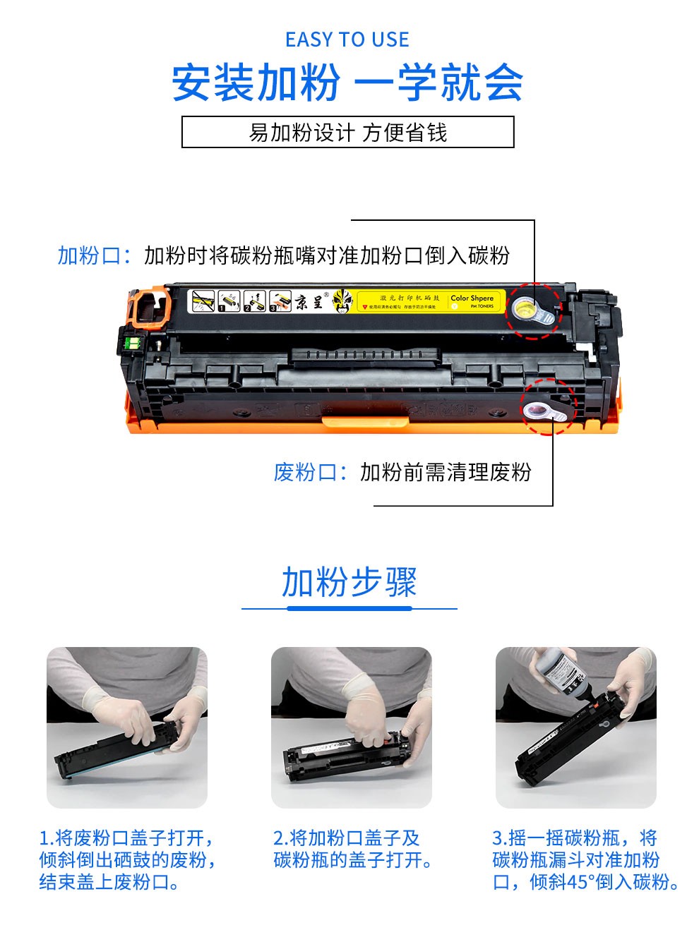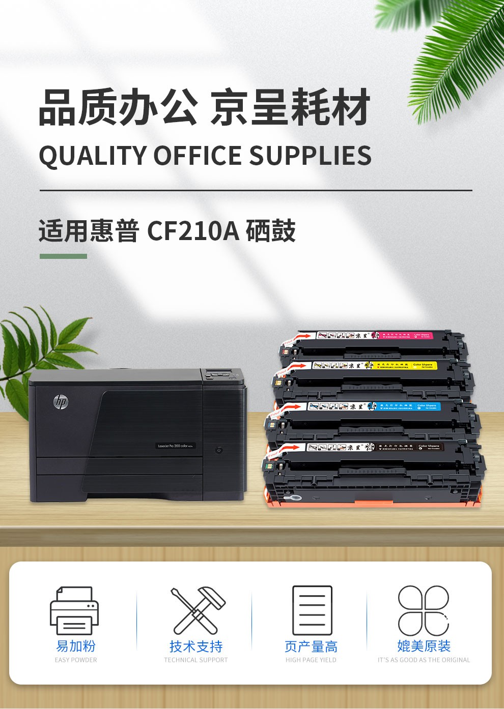 京呈适用惠普HP LaserJet Pro 200 Color M251n打印机硒鼓m276nw/n 【40g/瓶】碳粉 黄色/瓶