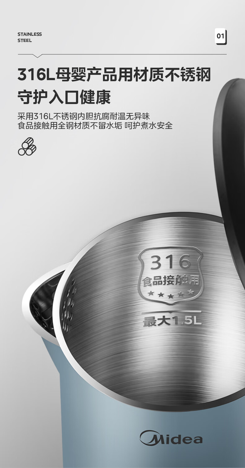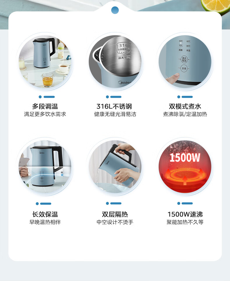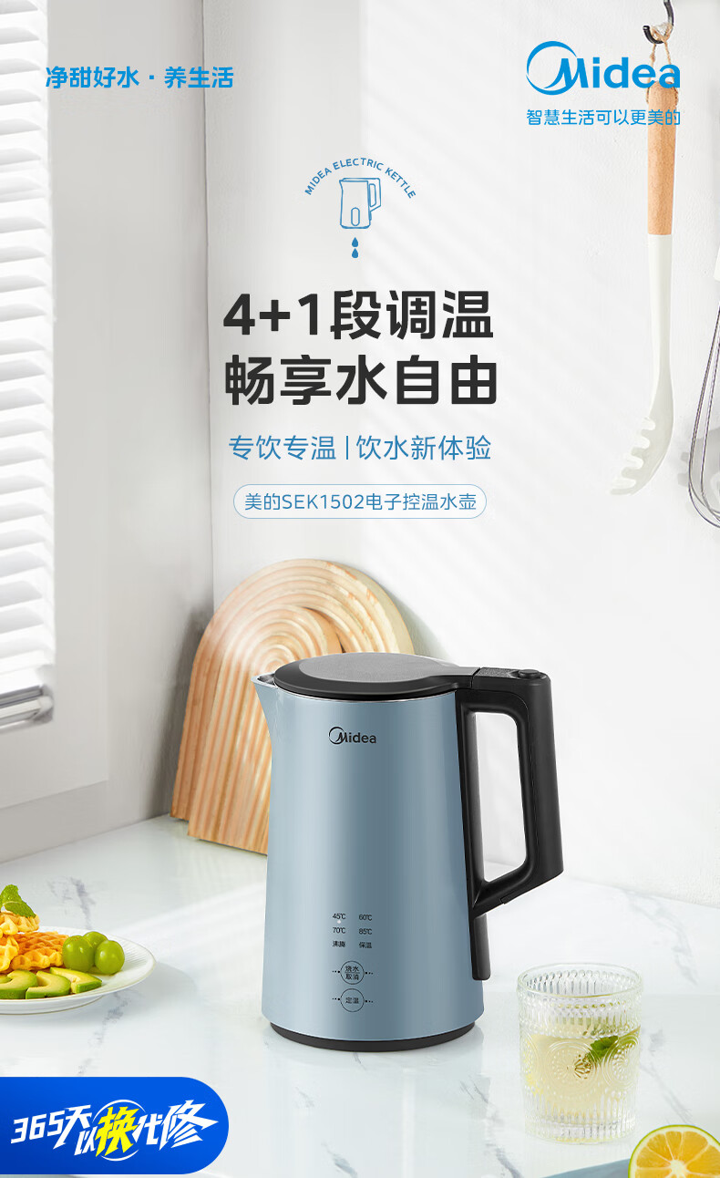 美的(Midea)电水壶烧水壶SEK1502(单位:台) 蓝色