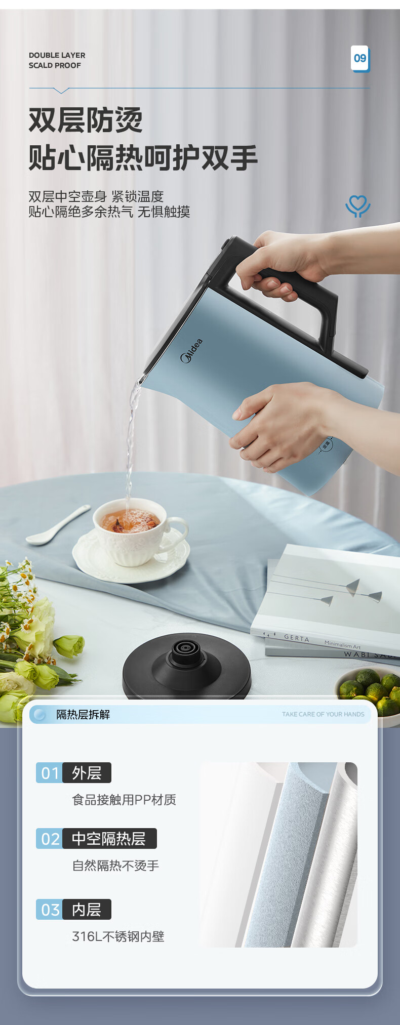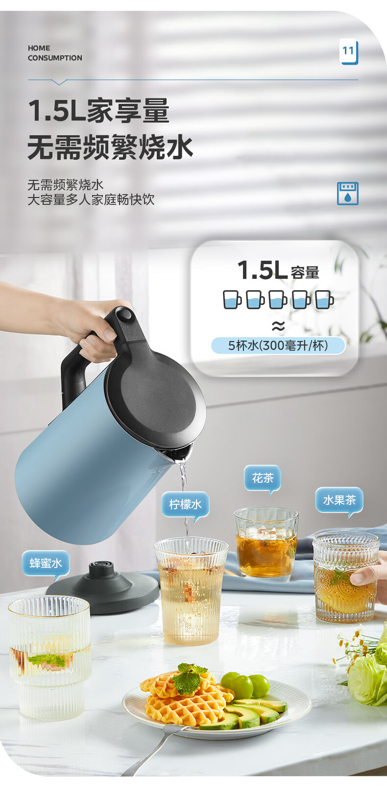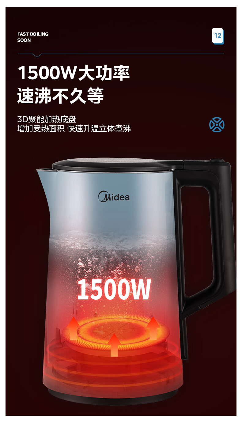 美的(Midea)电水壶烧水壶SEK1502(单位:台) 蓝色