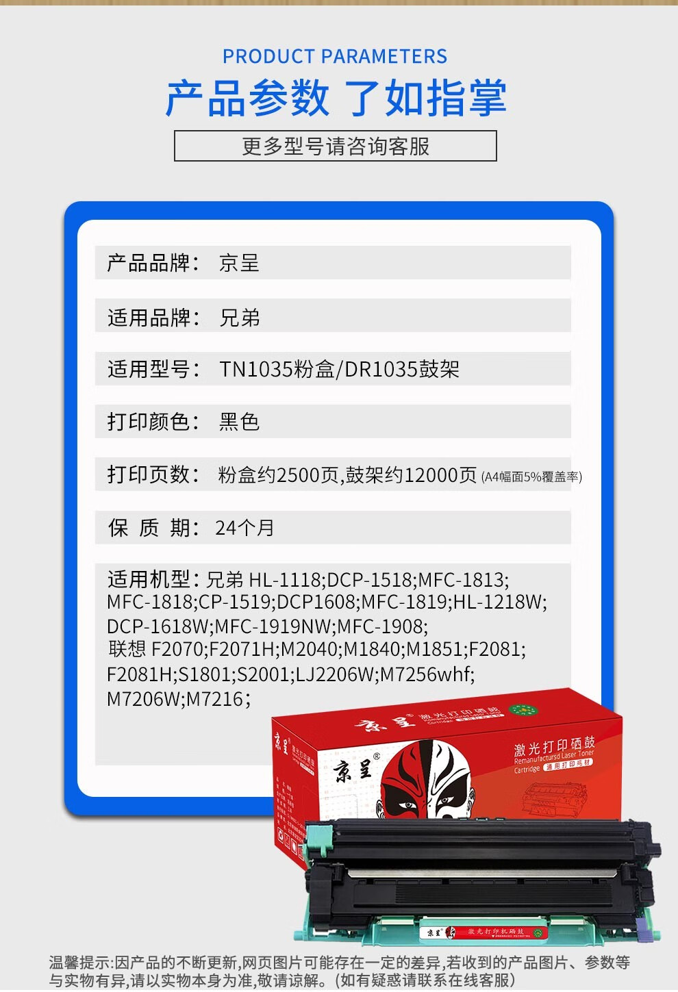 京呈MFC-1919NW适用兄弟DCP1618W墨盒1608TN1035粉盒1908 1208打印机 【硒鼓粉盒套装】TN1035系列套装 【硒鼓粉盒套装】TN1035系列套装