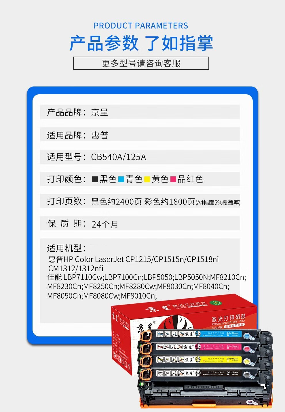京呈适用惠普cb540a硒鼓HP125a墨盒CP1215碳粉1525墨粉CM1312打印机彩色硒鼓 CB542A易加粉 黄色硒鼓/支