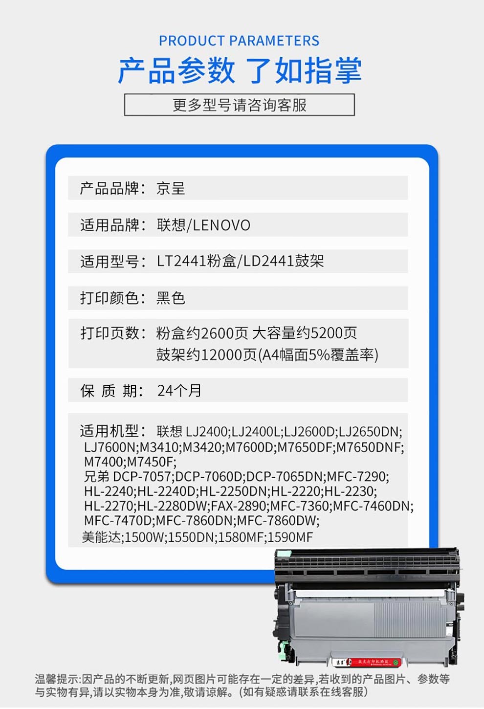 京呈适用联想M7400硒鼓M7450F粉盒LJ2400墨盒M7600D墨粉盒m7650dnf打印机 LT2441/2641超大容量(1万页)