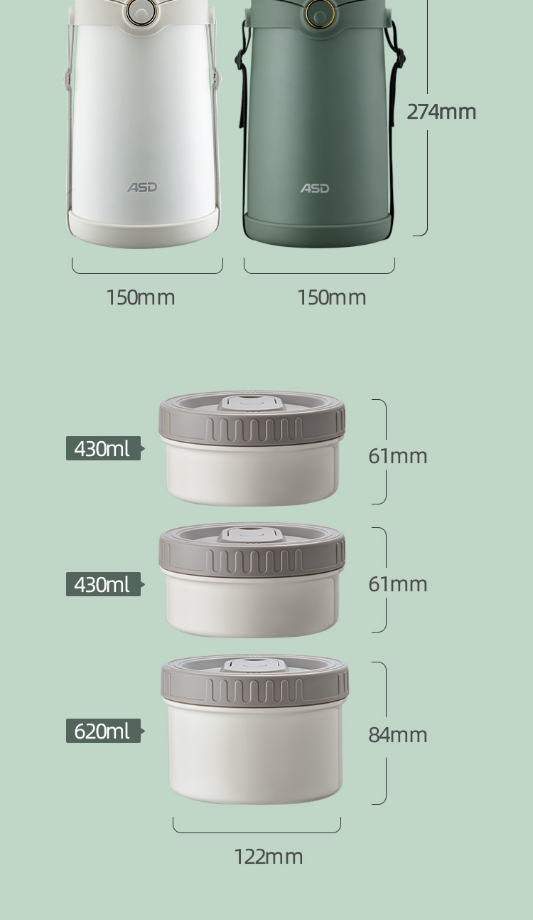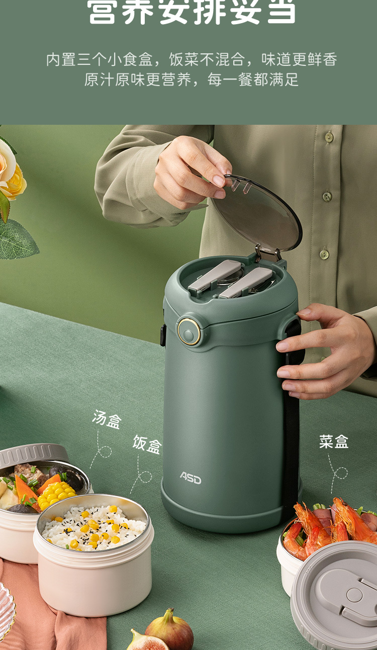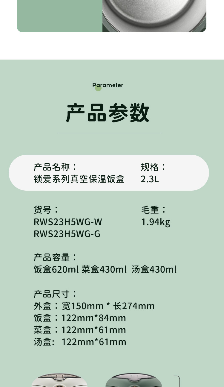 爱仕达锁爱系列真空保温饭盒RWS23H5WG-G/W 本白色