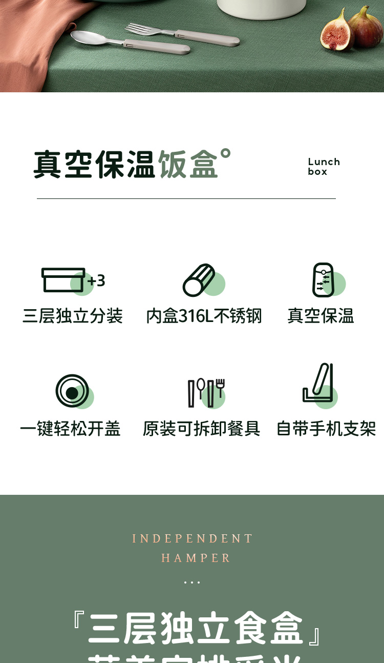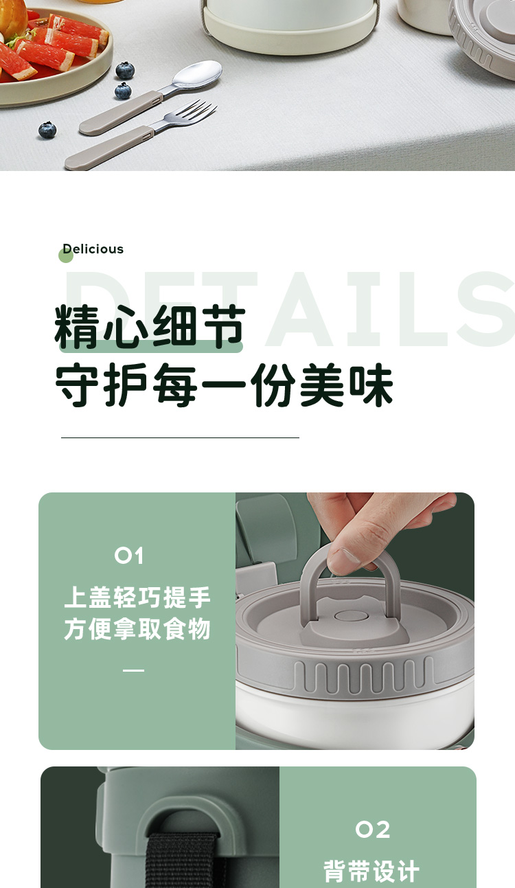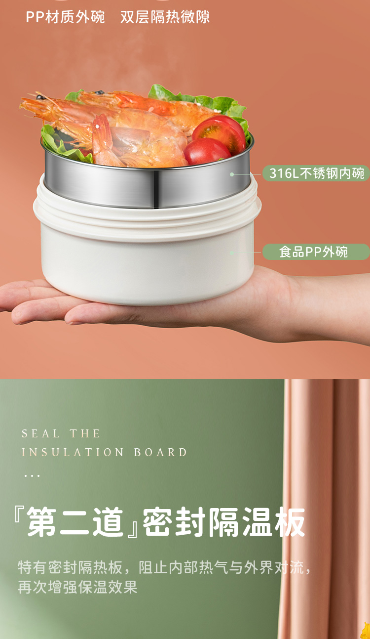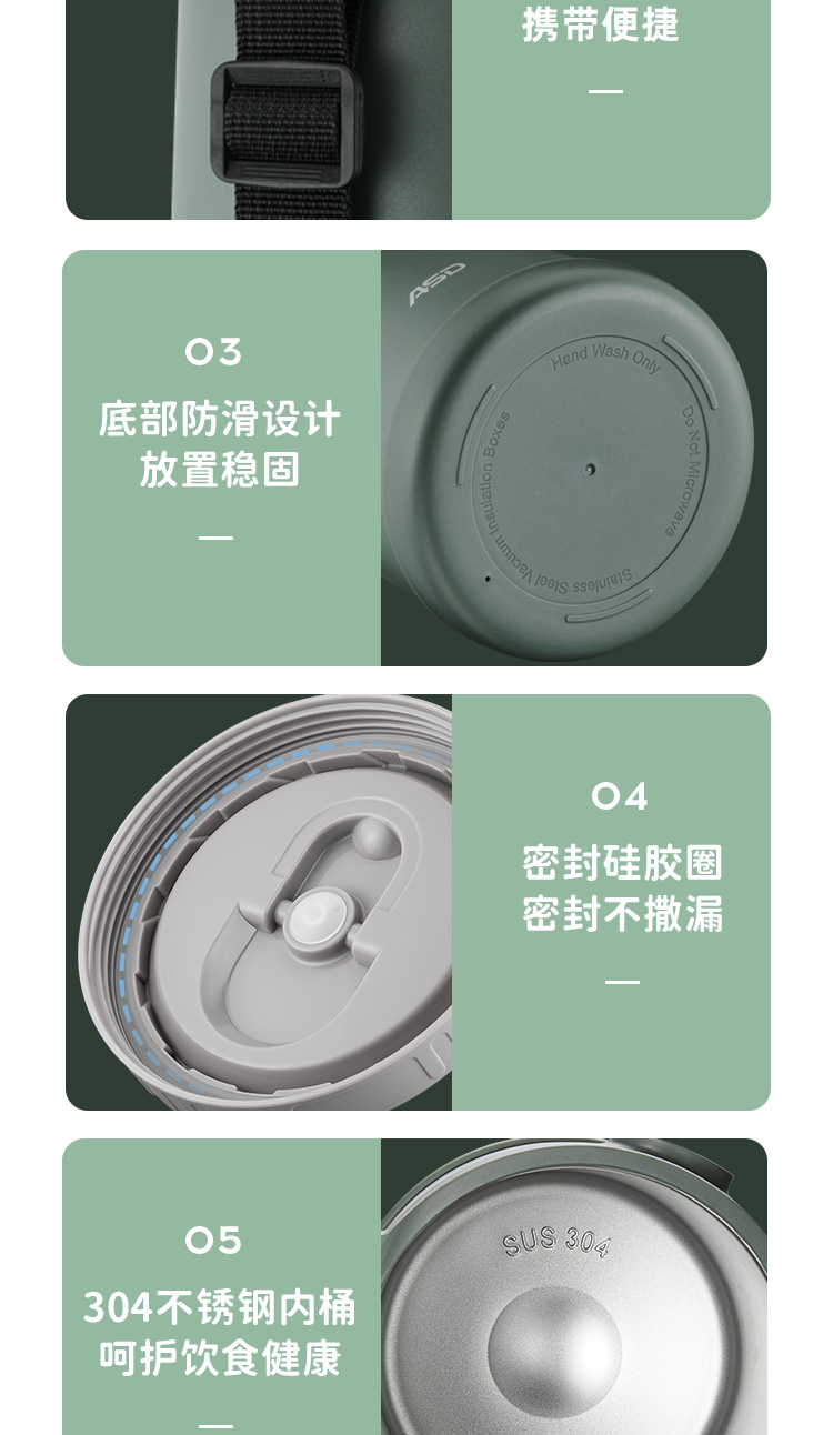 爱仕达锁爱系列真空保温饭盒RWS23H5WG-G/W 本白色