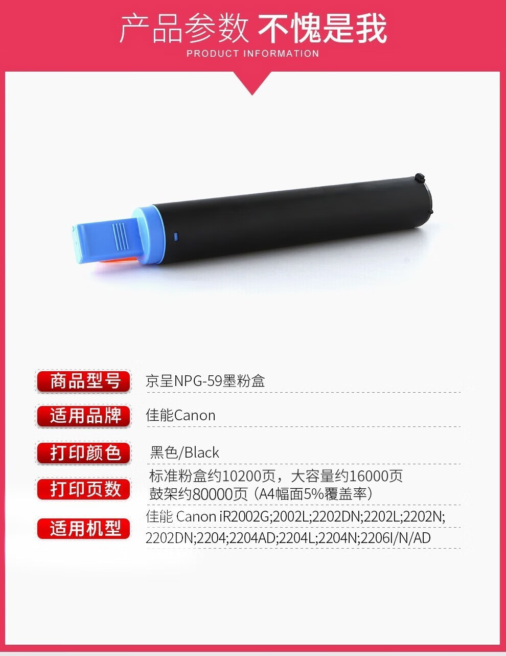 京呈适用佳能NPG-59碳粉IR2002G粉盒2204L墨盒2202DN 2204N 2206N硒鼓/支 NPG-59粉盒黑色大容量 1支